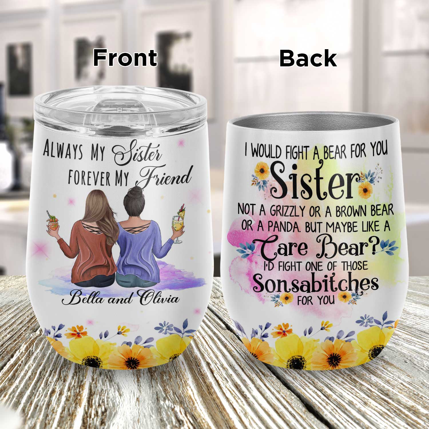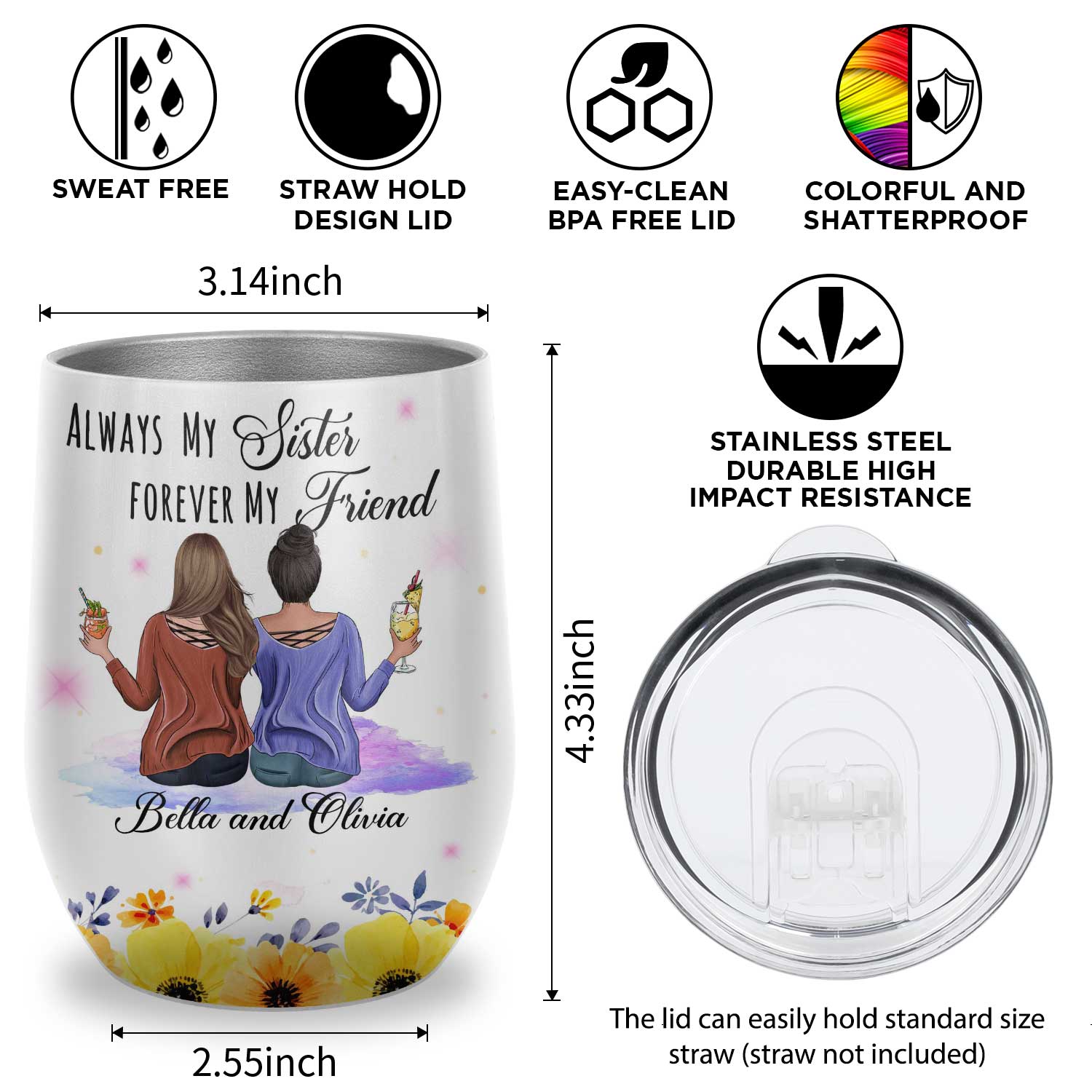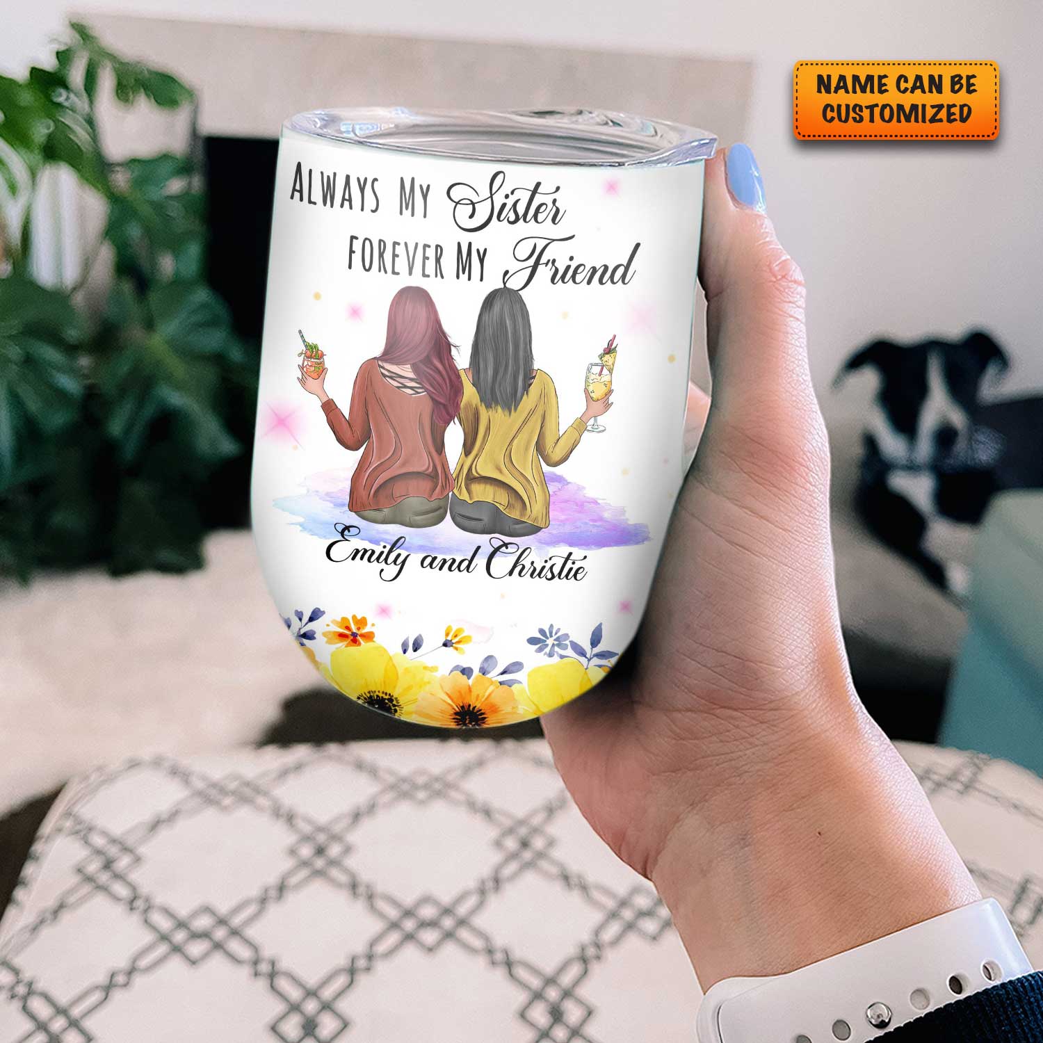 Let’s Shop Personalized Art Tumbler Gifts for Sister – Always My Sister Forever My Friend Floral Insulated Wine Tumbler Cup with Lid, Sister Coffee Mug!