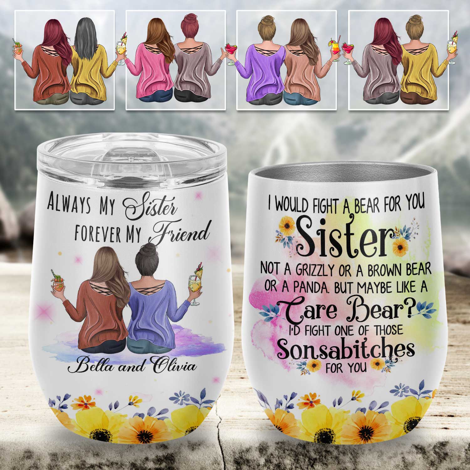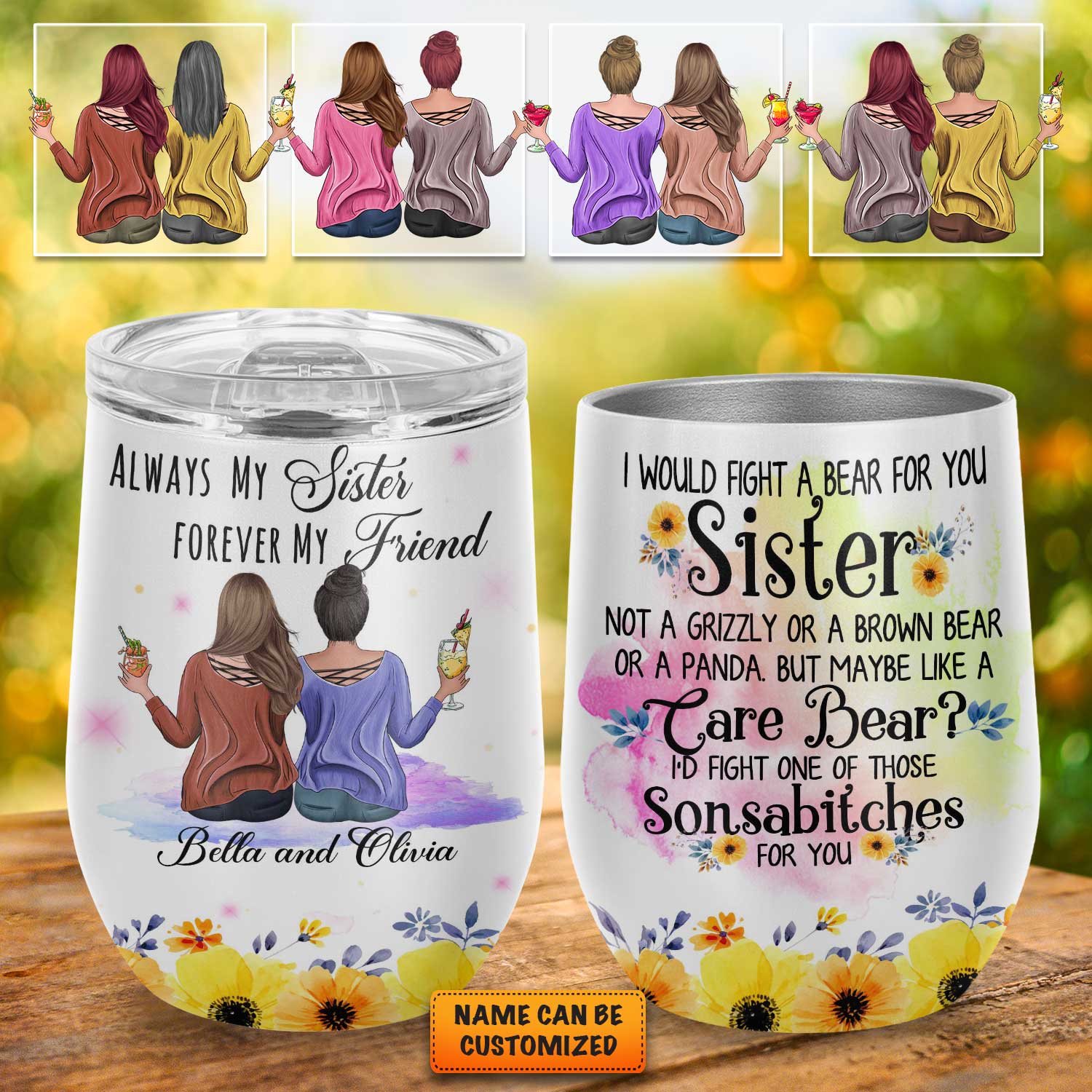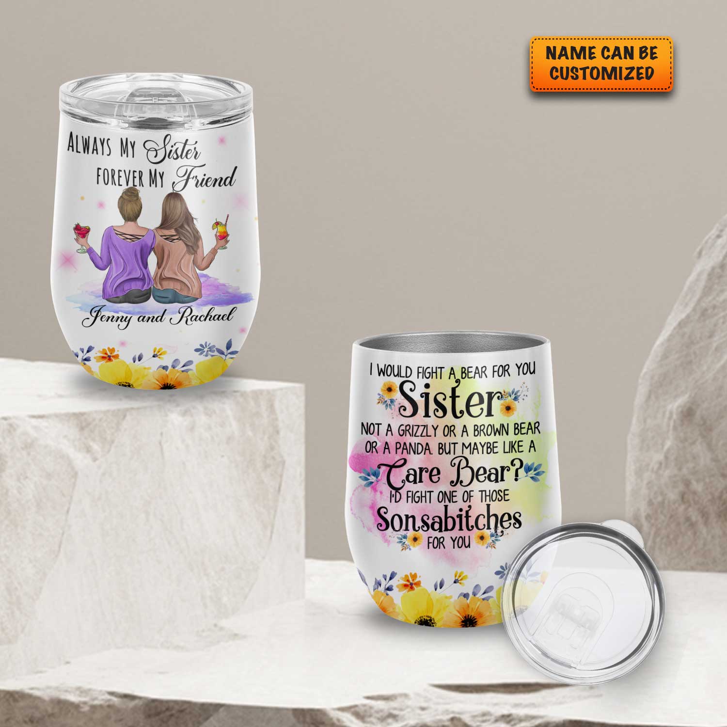 Let’s Shop Personalized Art Tumbler Gifts for Sister – Always My Sister Forever My Friend Floral Insulated Wine Tumbler Cup with Lid, Sister Coffee Mug!
