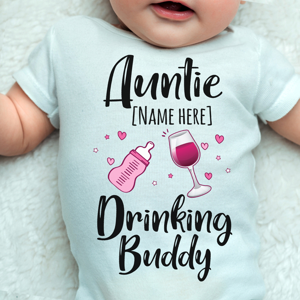 Personalized Auntie’s Drinking Bud-dy Baby Onesie – Baby Infant Bodysuit