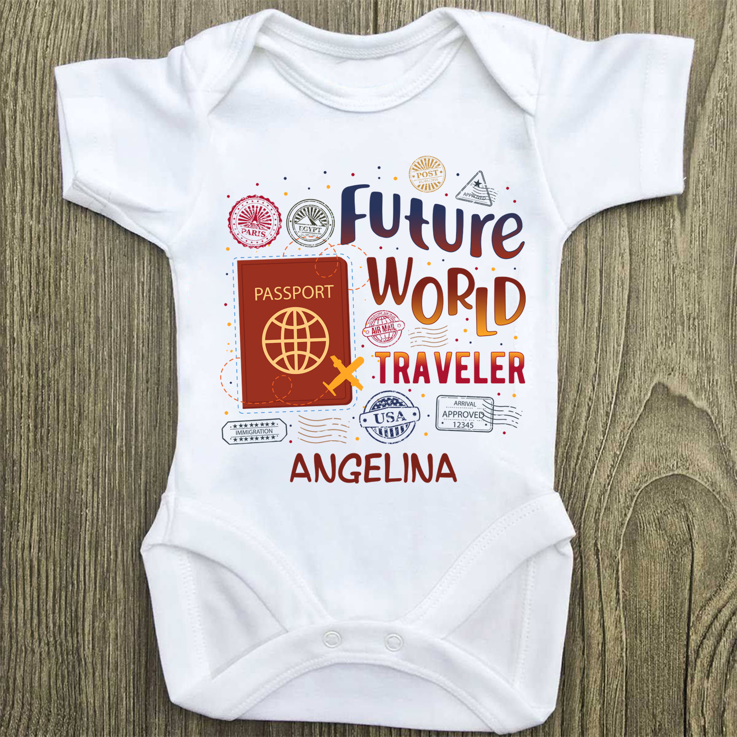 Let’s Shop Personalized Future World Traveler Pregnancy Announcement Baby Onesie – Toddler Baby Infant Bodysuit!