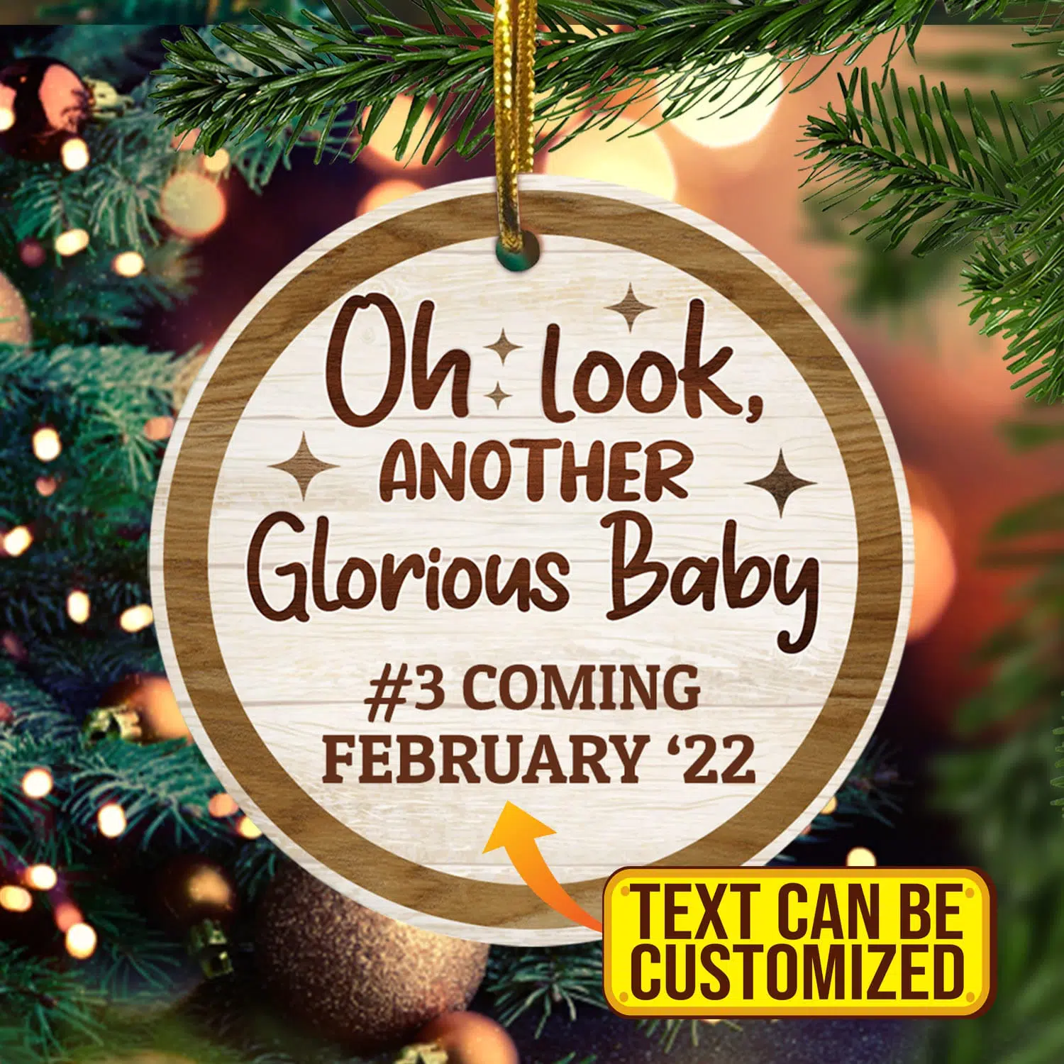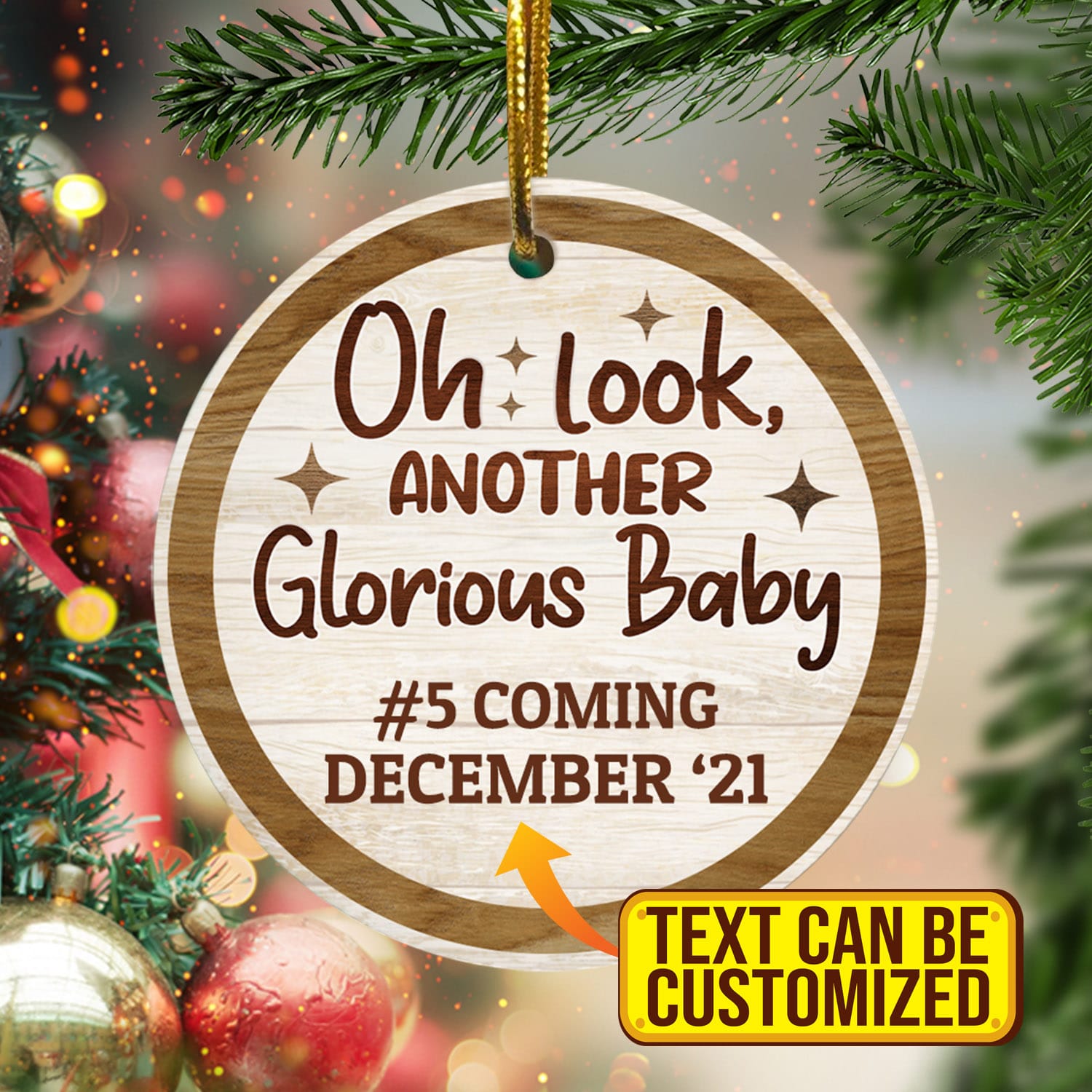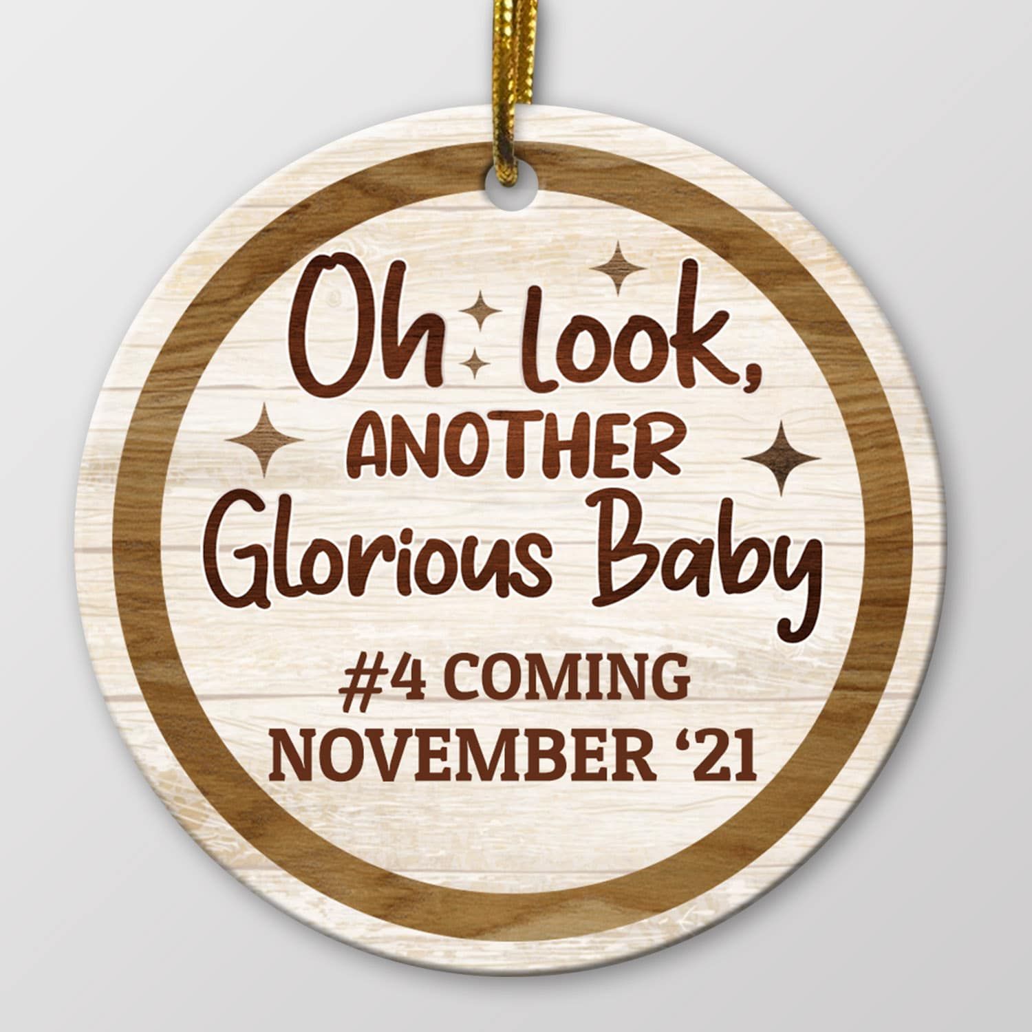 Let’s Shop Personalized Date Oh Look Another Glorious Baby Coming Decorative Christmas Circle Ornament Keepsake!
