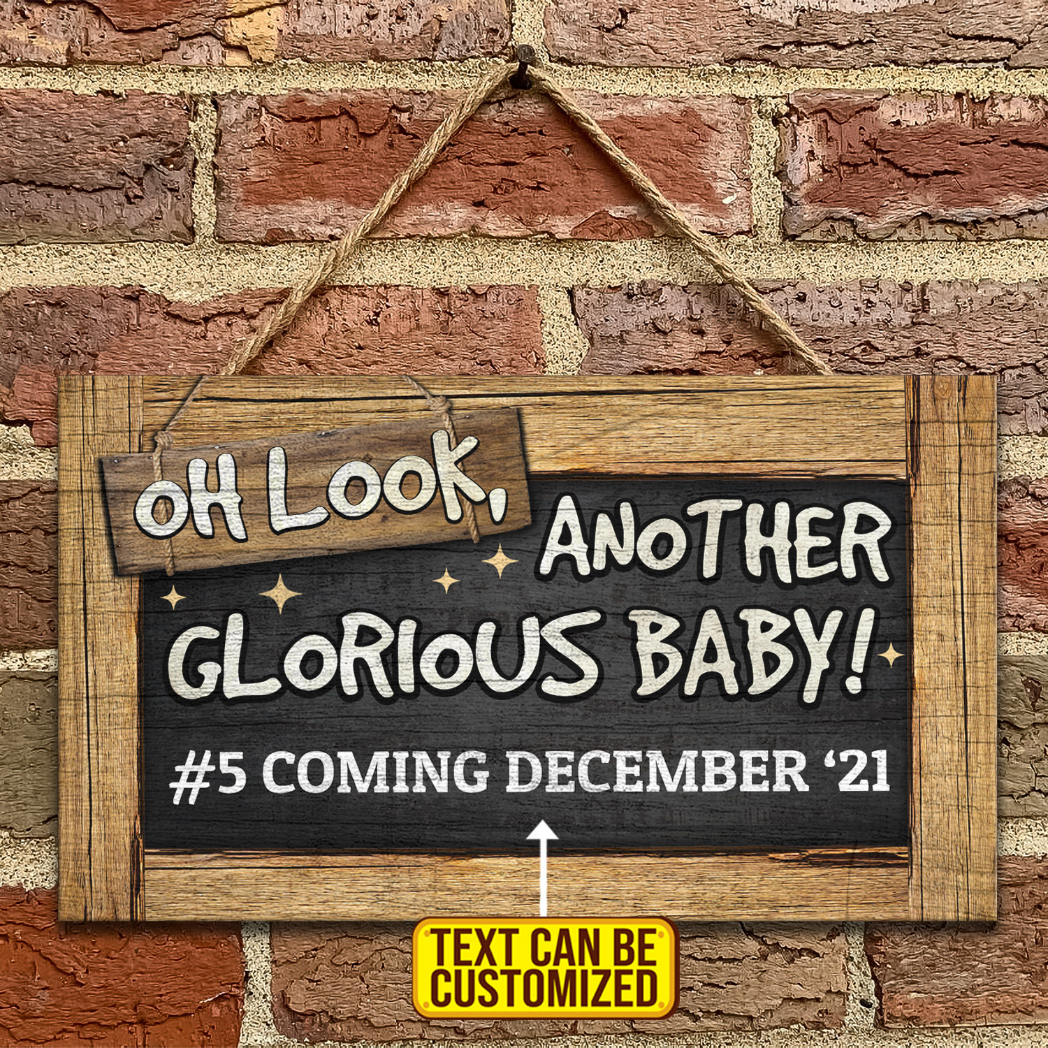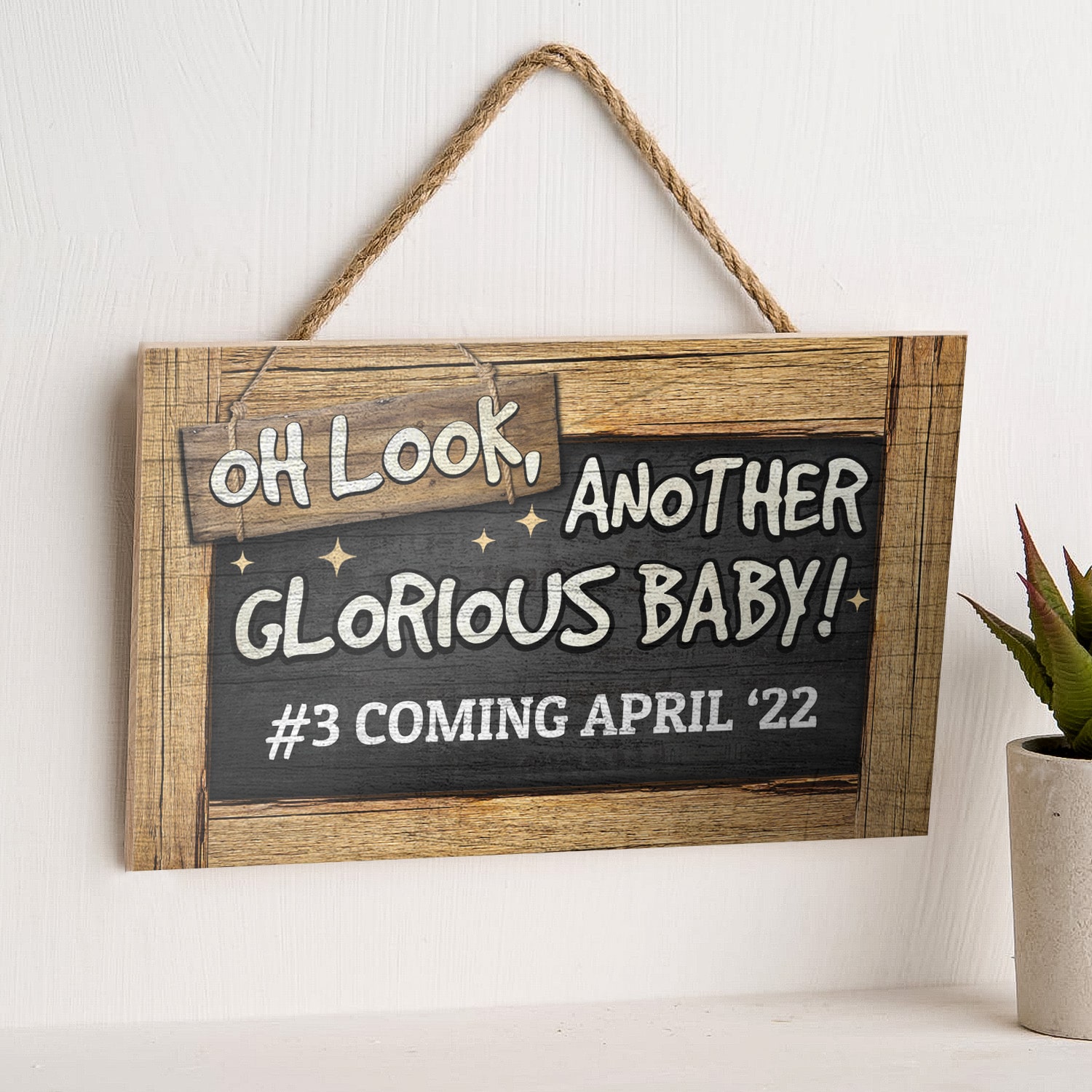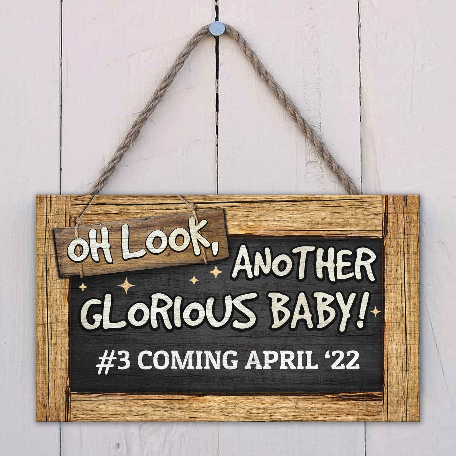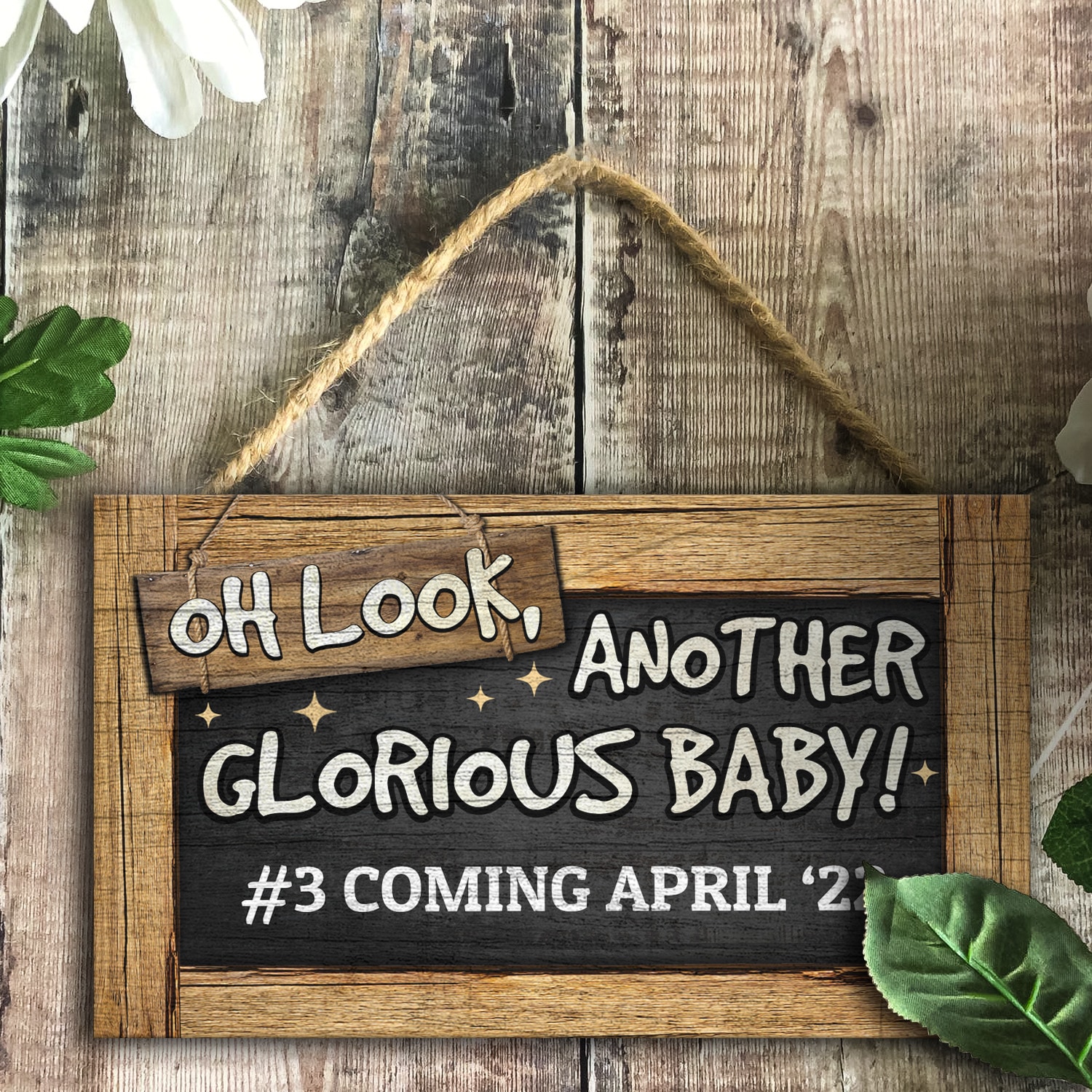 Let’s Shop Personalized Date Oh Look Another Glorious Baby Coming Decorative Rectangle Wooden Door Sign – Front Porch Sign Decor!