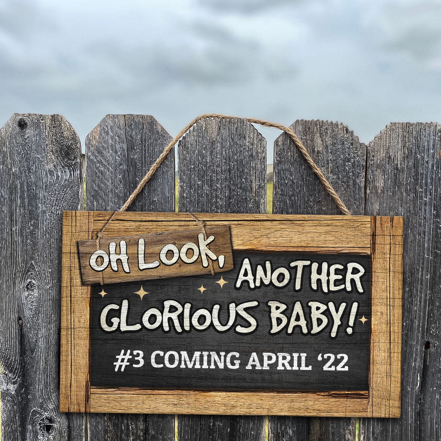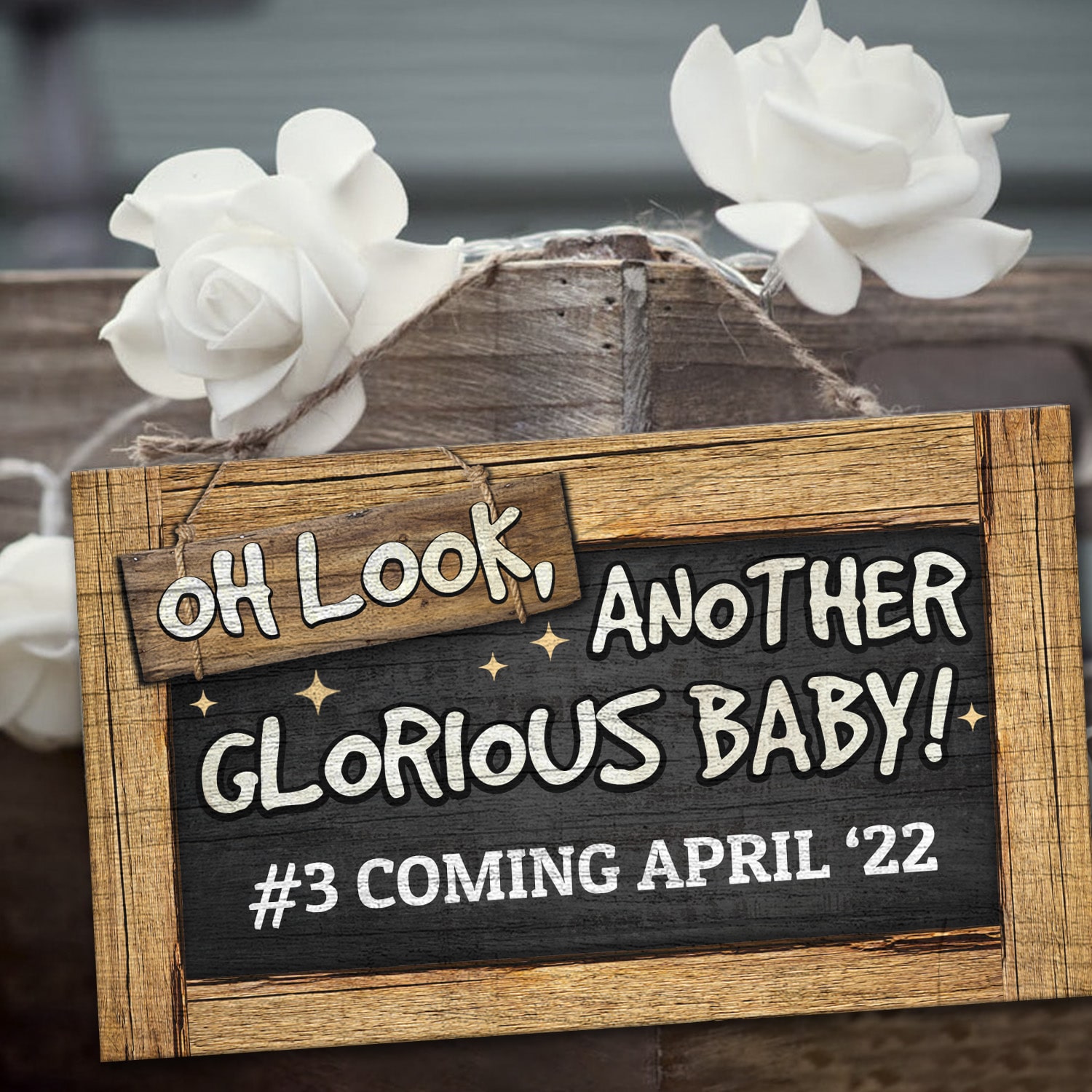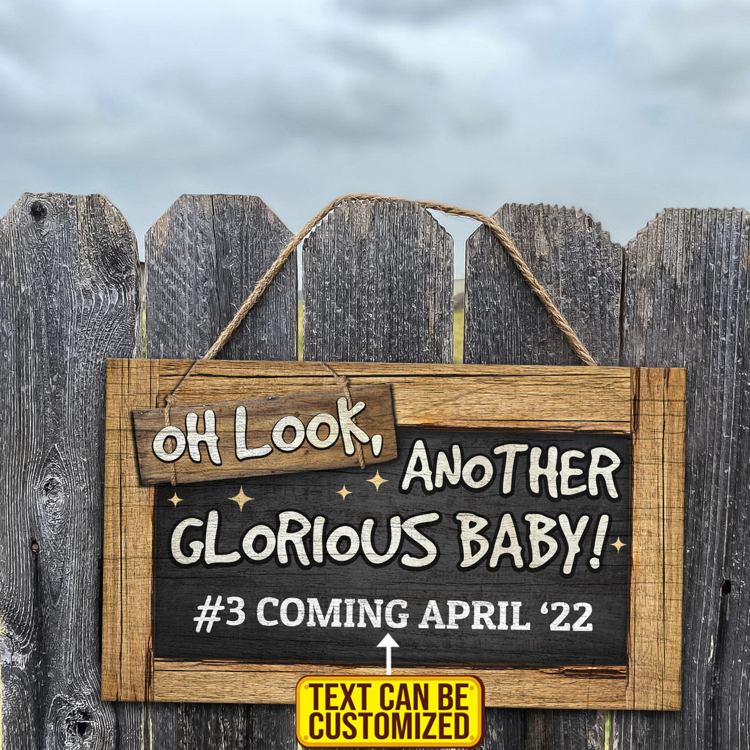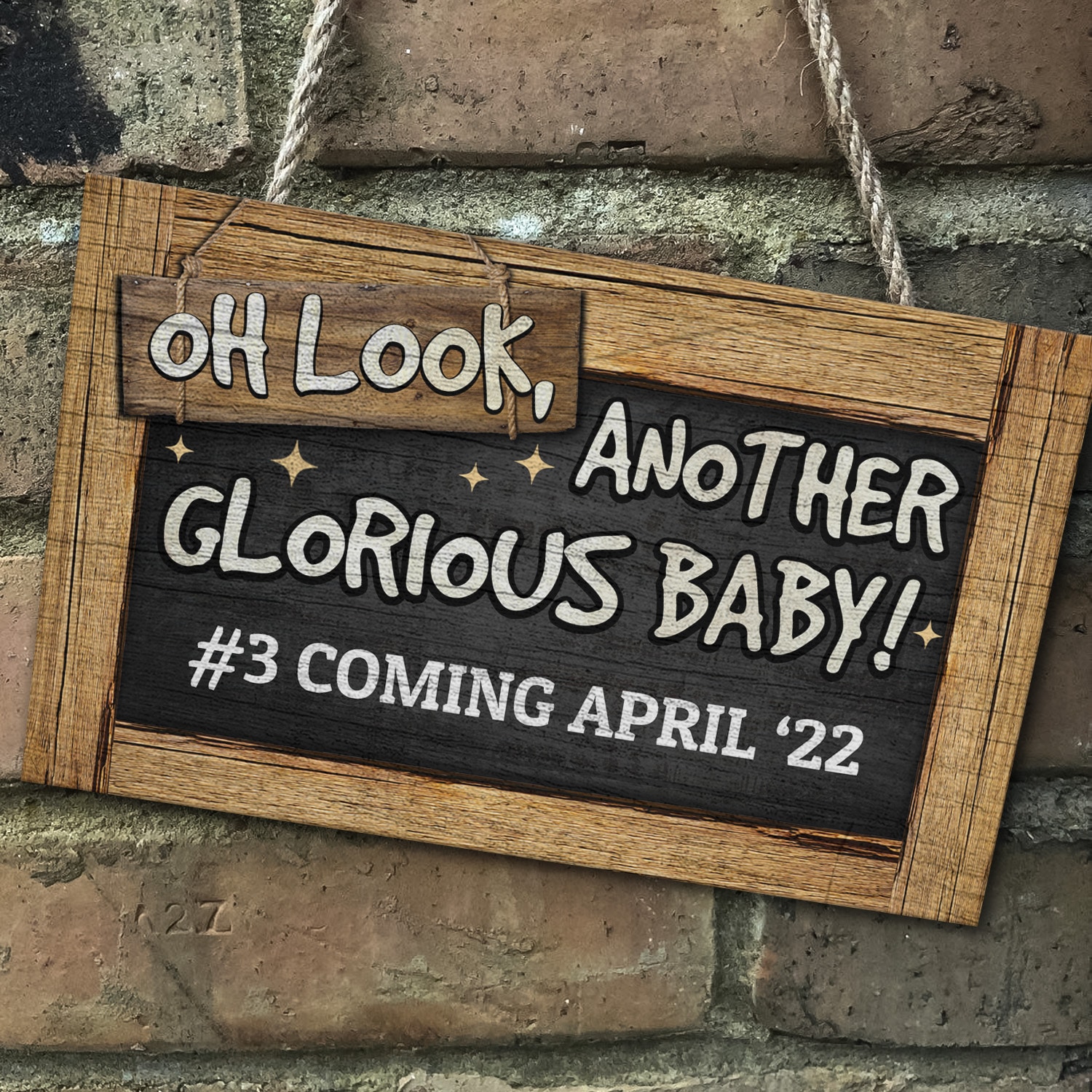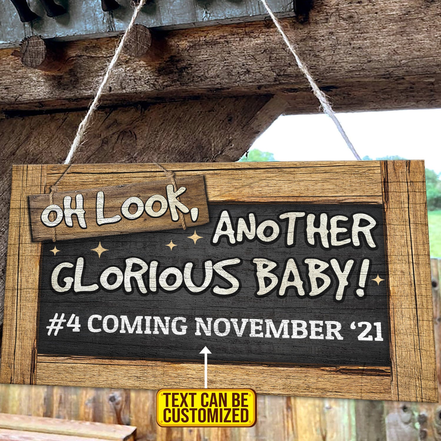 Let’s Shop Personalized Date Oh Look Another Glorious Baby Coming Decorative Rectangle Wooden Door Sign – Front Porch Sign Decor!