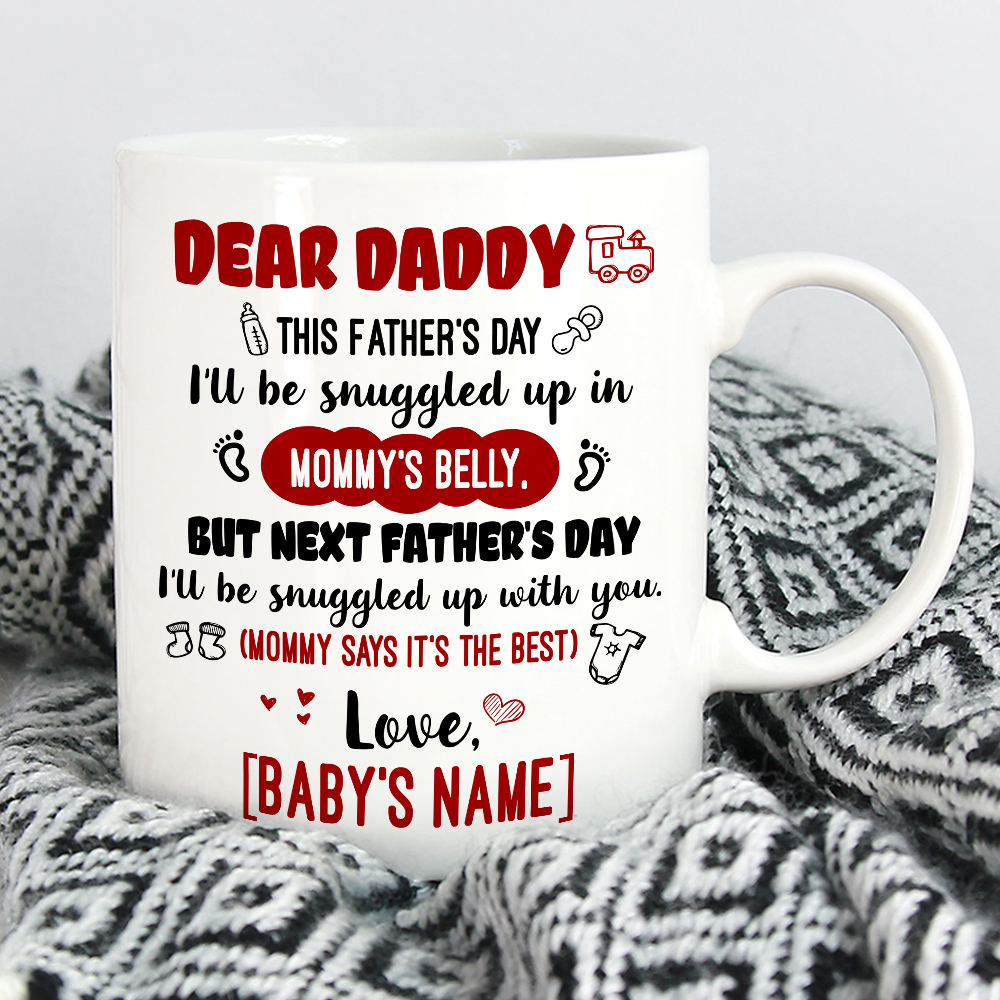 Shop Personalized Dear Daddy This Father’s Day I’ll Be Snuggled Up in Mommy’s Belly Ceramic Coffee Mug – Beer Stein.