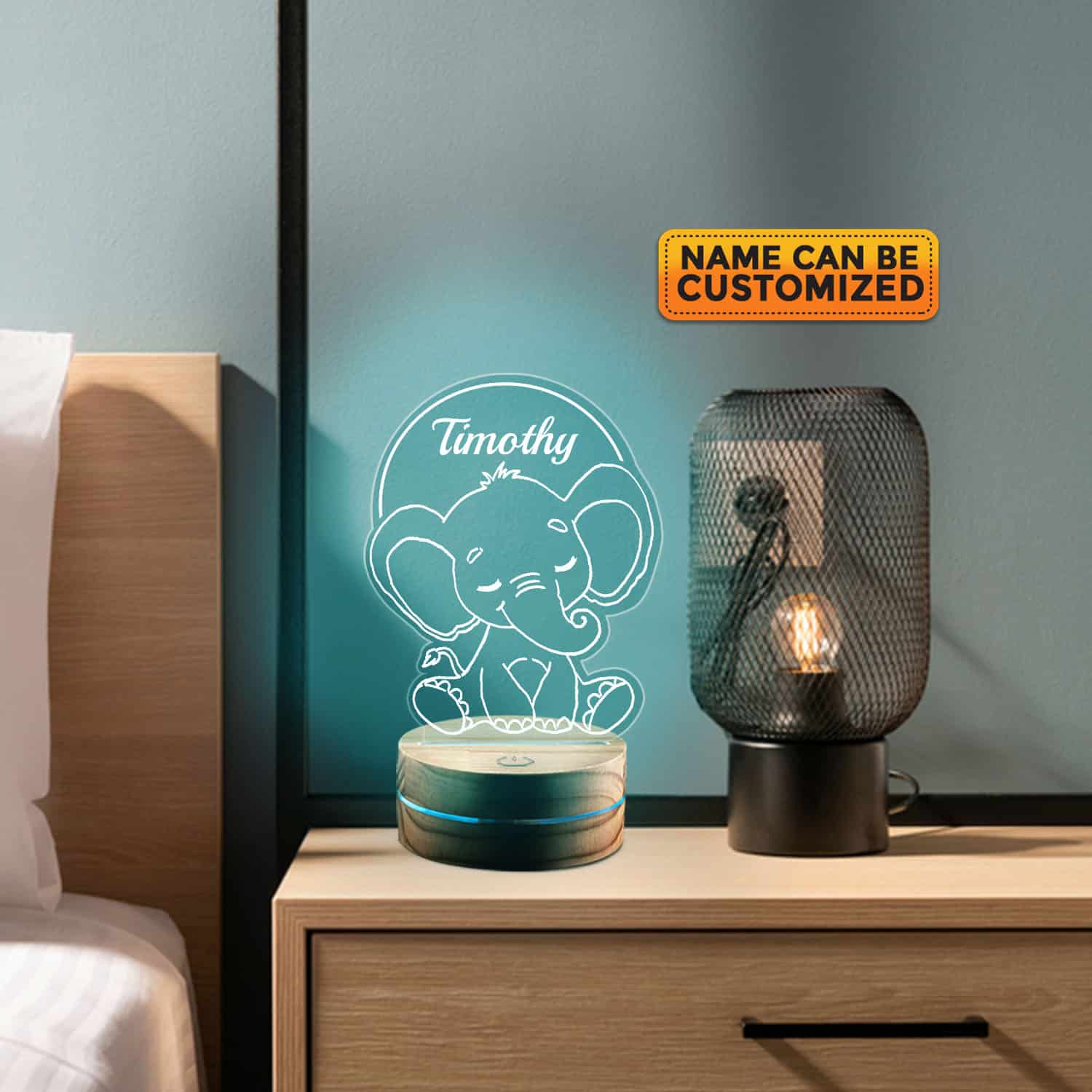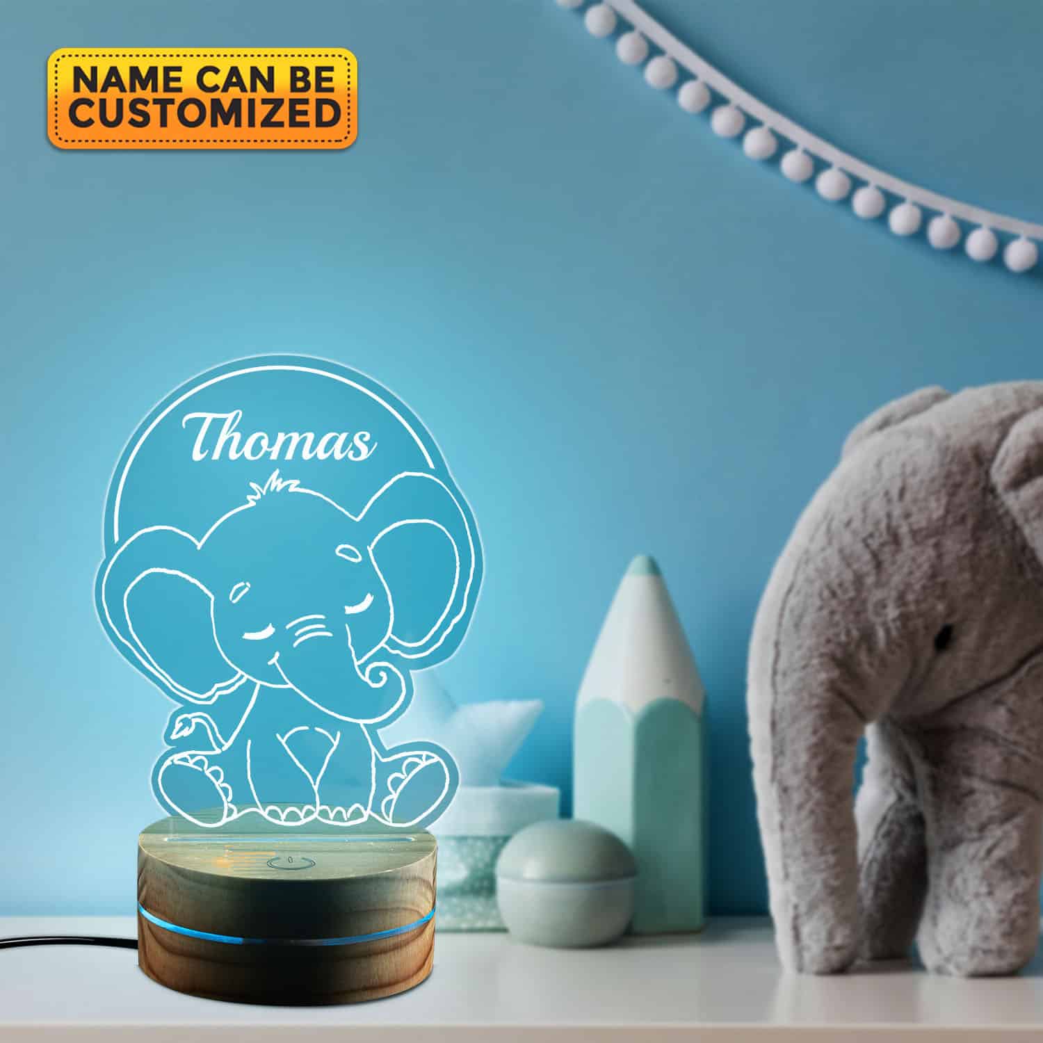 Personalized Baby Name Elephant LED Light Decor Room – Elephant Night Lights for Boys and Girls Bedroom