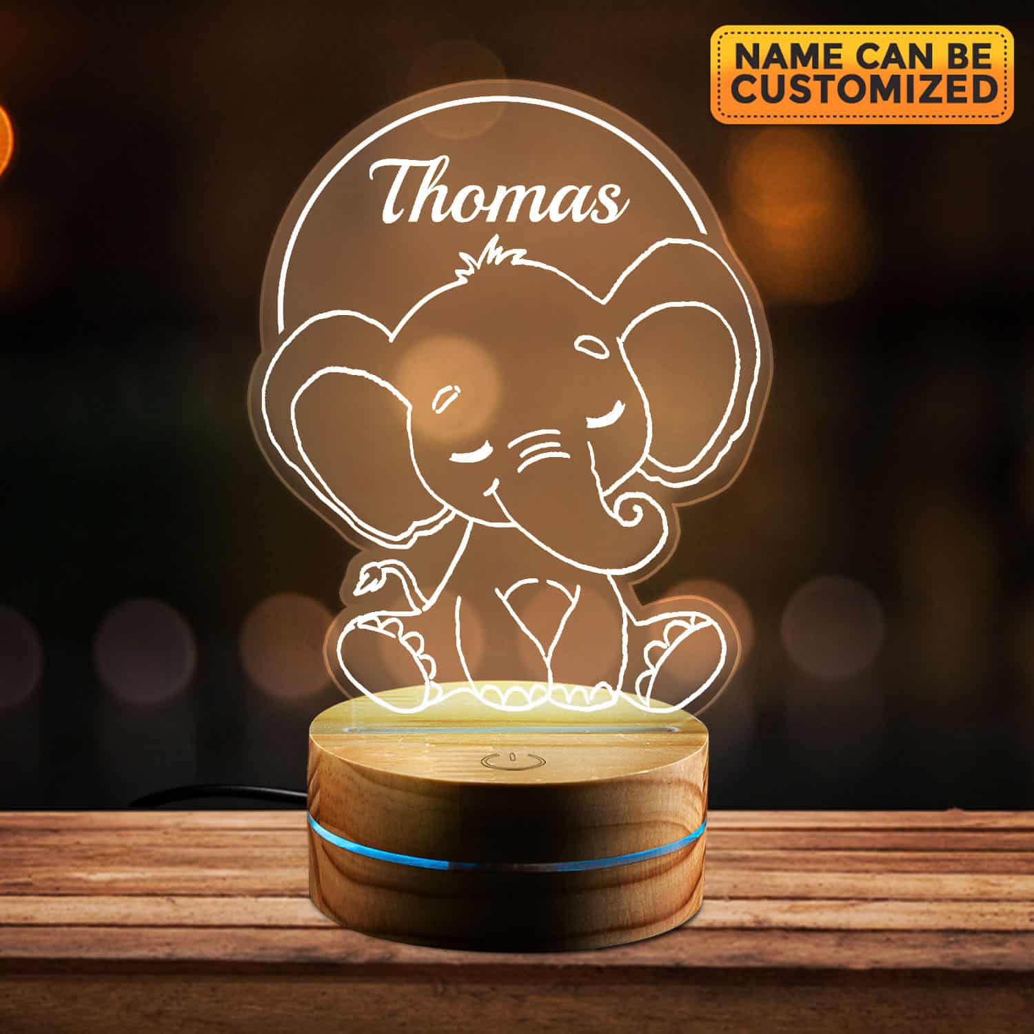 Personalized Baby Name Elephant LED Light Decor Room - Elephant Night Lights for Boys and Girls Bedroom