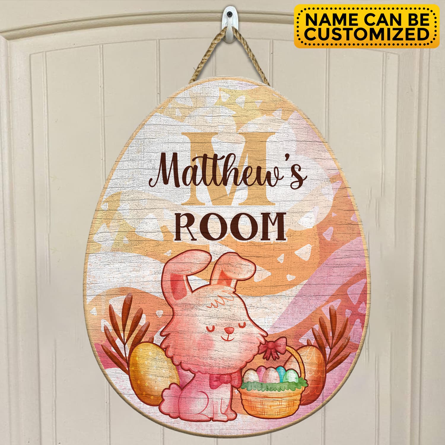 Personalized Name Easter Bunny Egg Shape Door Sign - Custom Bunny Baby Bedroom Nursery Wall Wooden Sign Decor