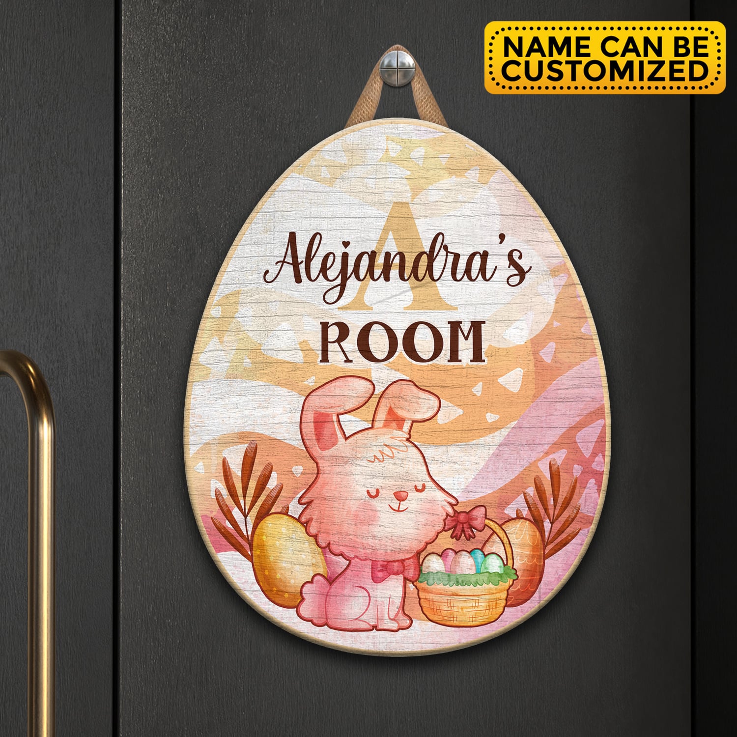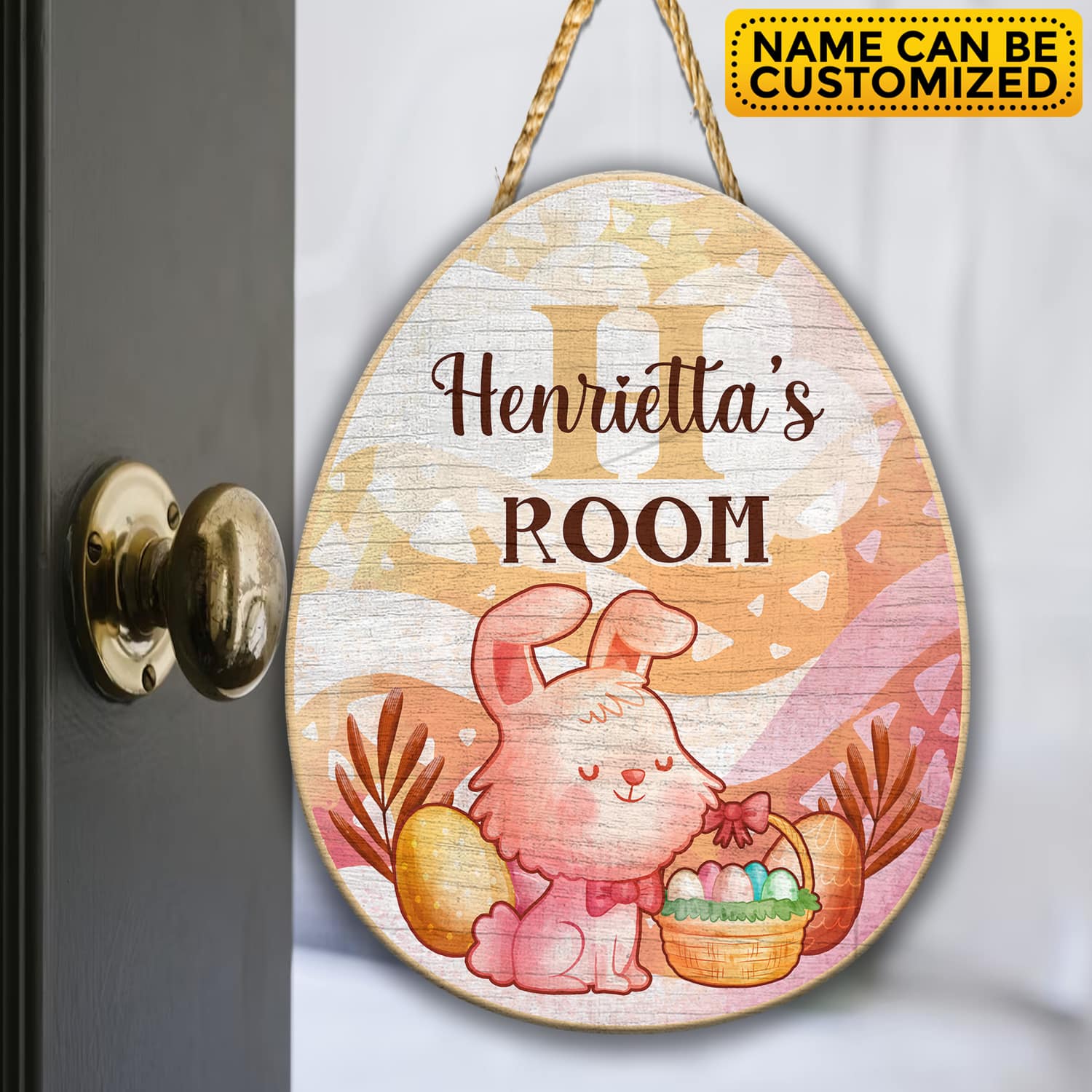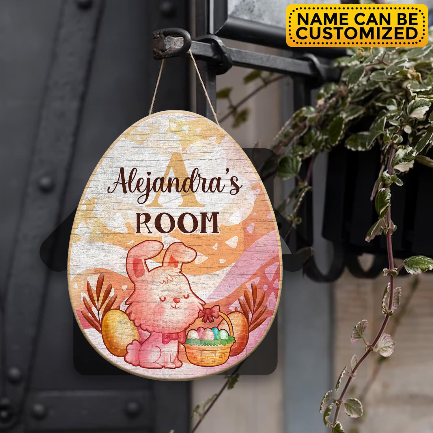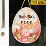Personalized Name Easter Bunny Egg Shape Door Sign – Custom Bunny Baby Bedroom Nursery Wall Wooden Sign Decor