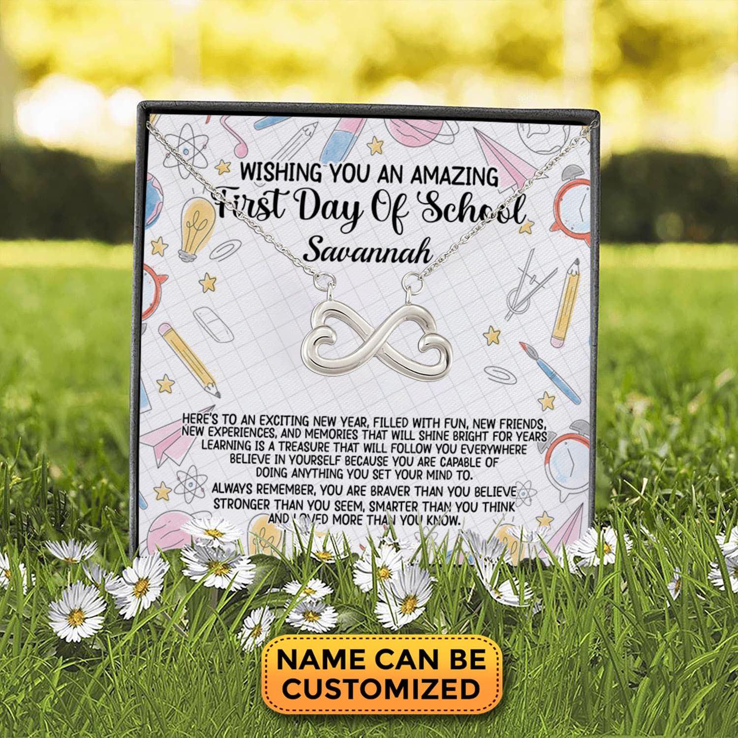 Are you spending too much time to find creative merchandise for you or suitable & special gifts for your mommy, your daddy, your son, your daughter, your children, your friends or someone you love? The struggle is over because we have various Back to School Necklace, Back to School Necklace Mom and Daughter, Back to School Name Necklace, Back to School Necklace for Girls, Kids Back to School Necklace, Back to School Necklaces for Classroom, Girls Back to School Necklace which will make perfect presents for your beloveds. In order to make your present stand out, we have created lots of unique and awesome customized photo gifts & personalized designs.