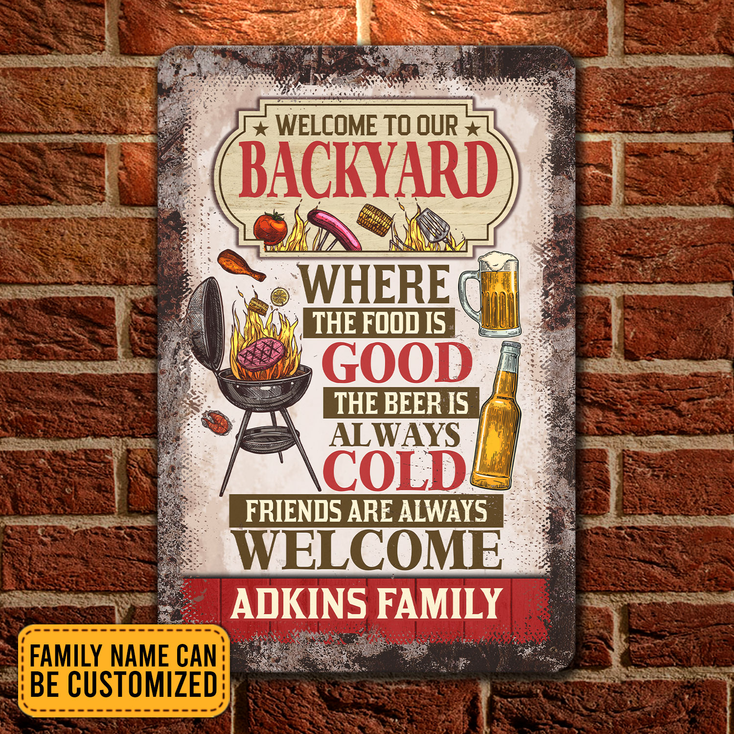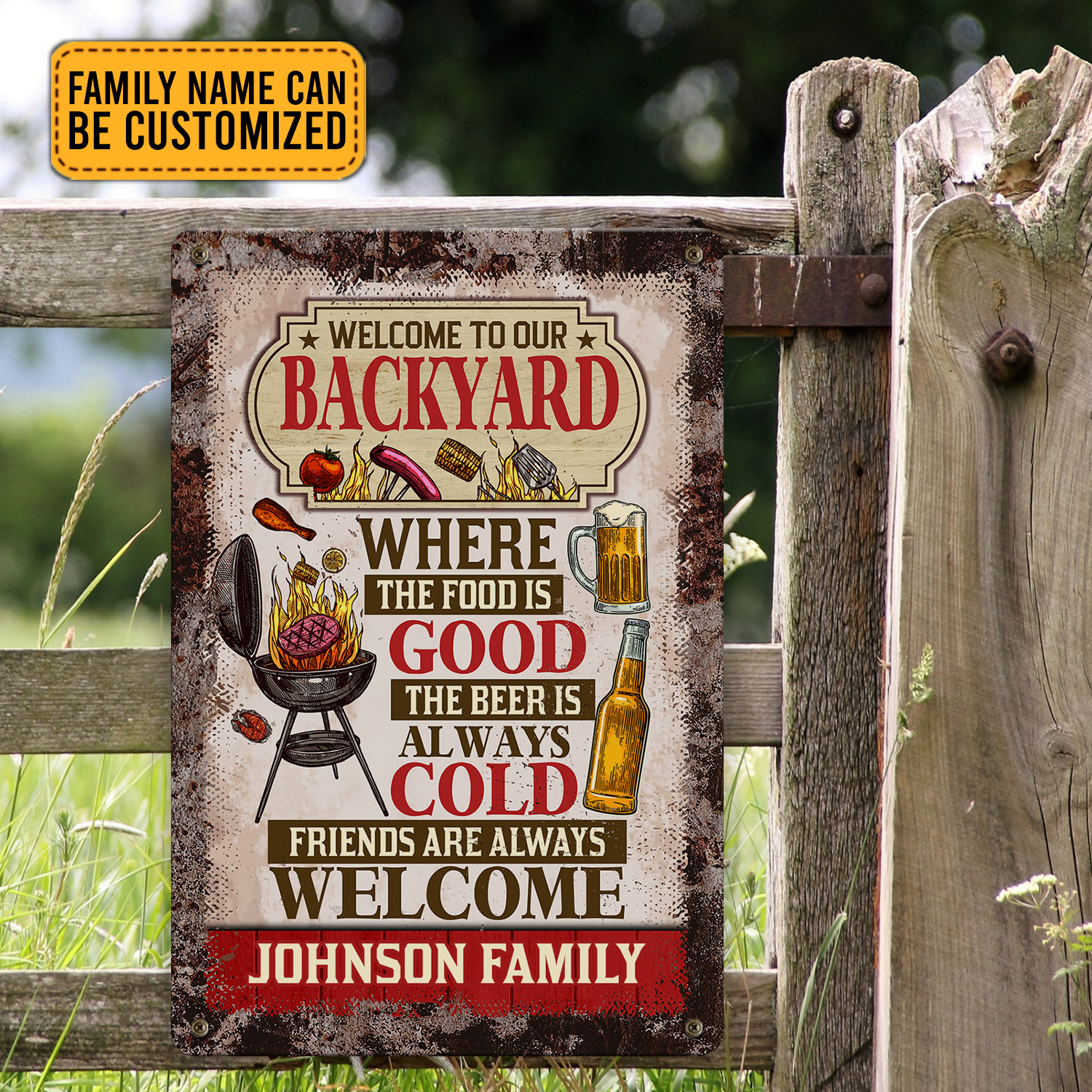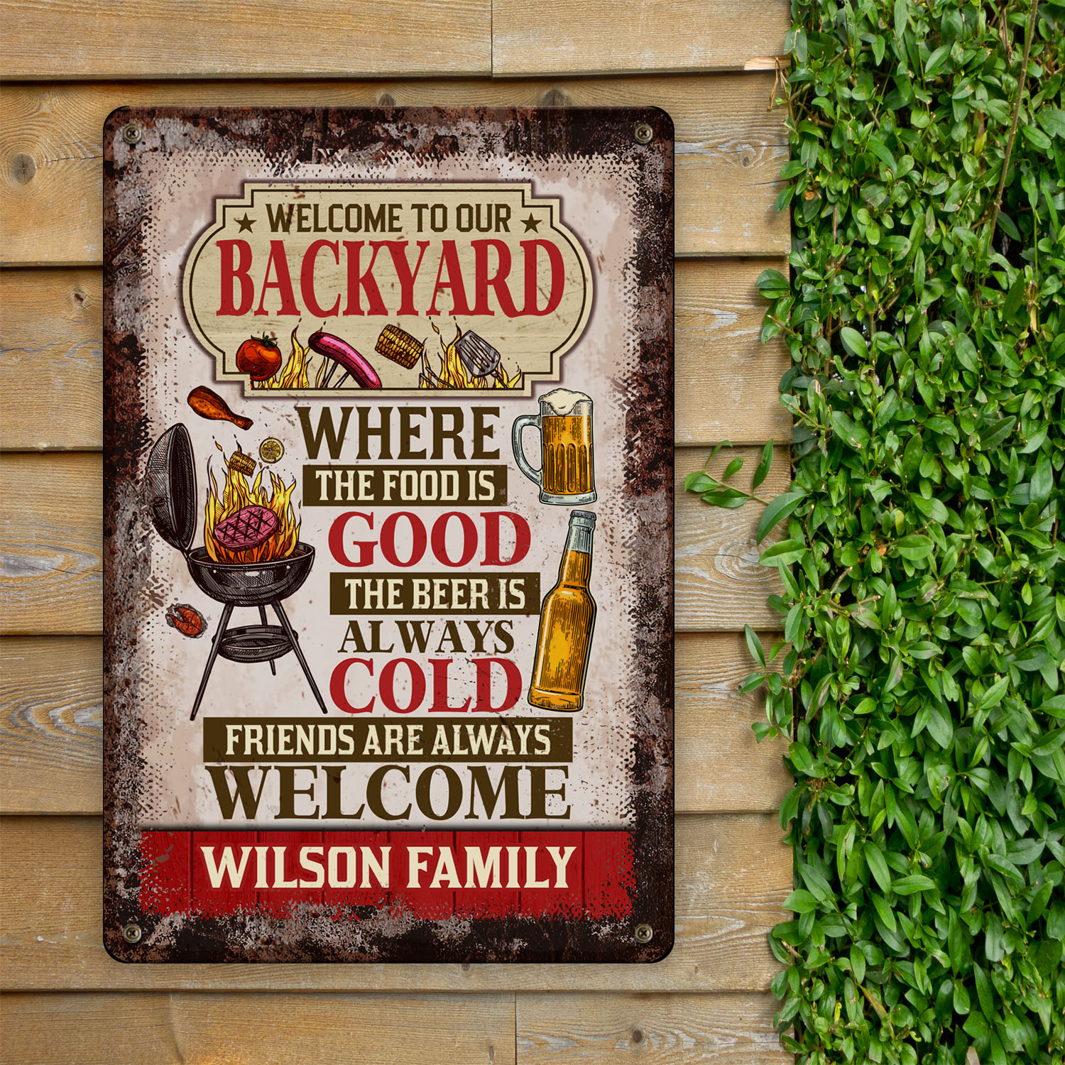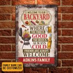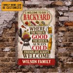 Let’s Shop Personalized Welcome To Our Backyard Where The Food Is Good The Beer Is Always Cold Decorative Metal Sign!