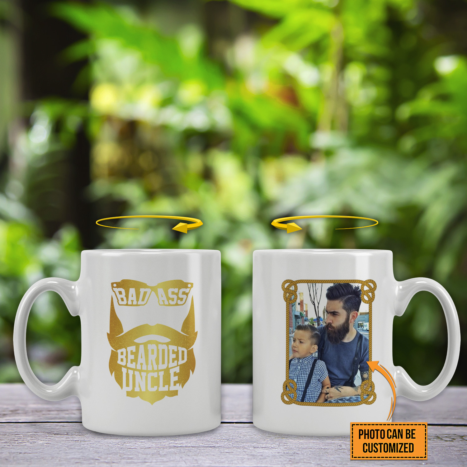 Let’s Shop Personalized Photo Badass Bearded Uncle Ceramic Coffee Mug – Beer Stein – Water Bottle – Color Changing Mug!