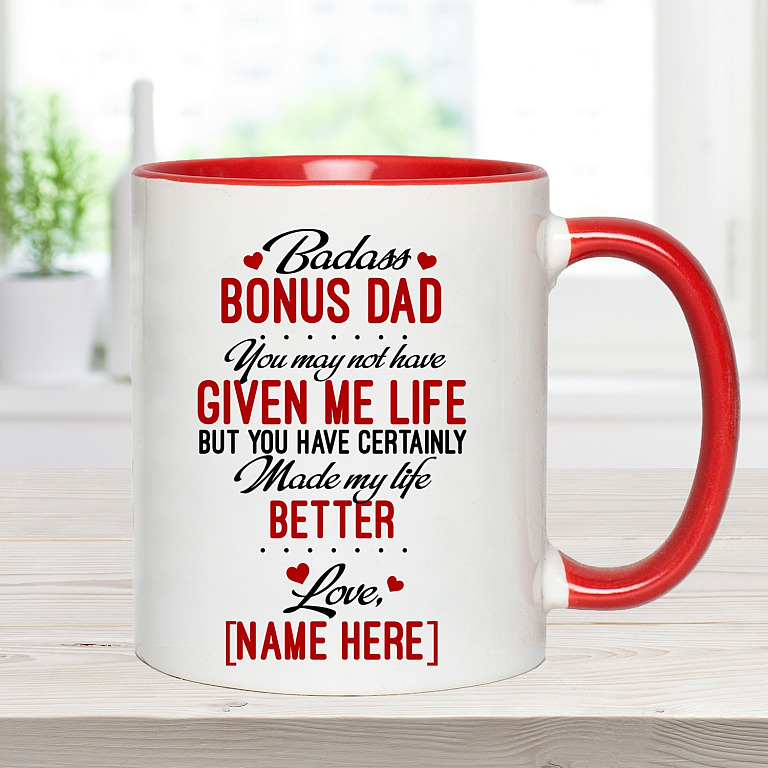 Shop Personalized Badass Bonus Dad You May Not Have Given Me Life But Made My Life Better Ceramic Accent Mug.
