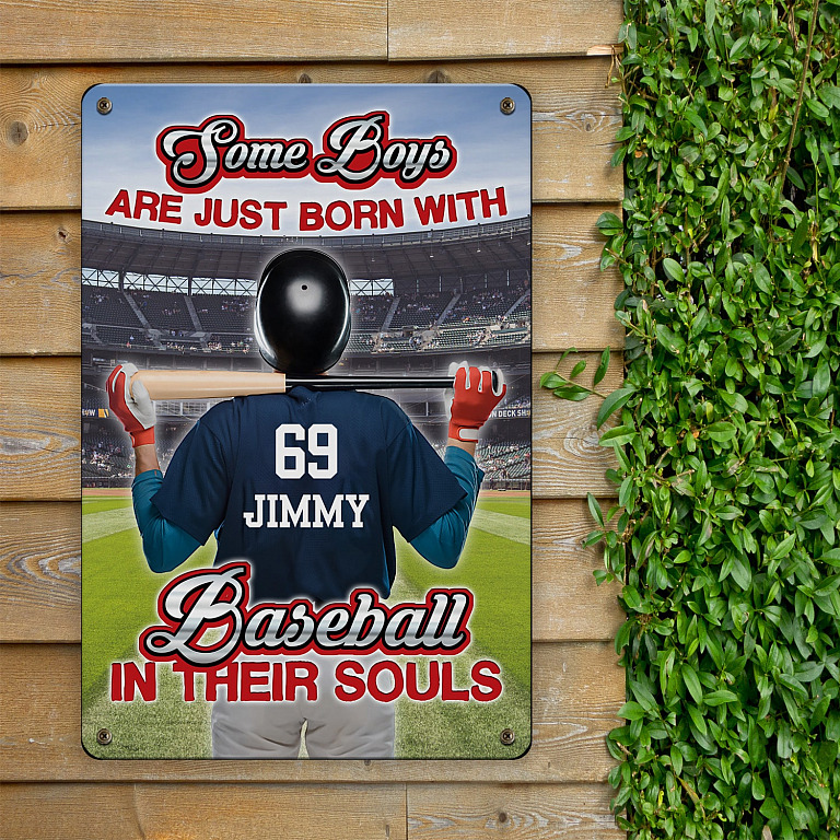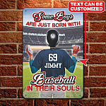 Let’s Shop Personalized Name And Number Some Boys Are Just Born With Baseball In Their Souls Decorative Metal Sign – Indoor Outdoor Decor!