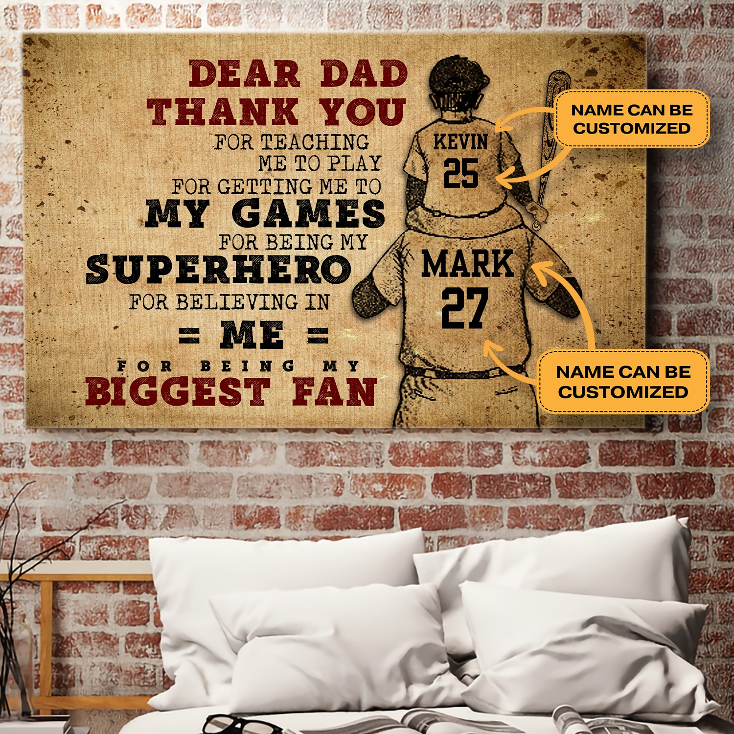 Let’s Shop Personalized Dear Dad Thank You for Being My Biggest Fan Baseball Framed Canvas – Unframed Poster!