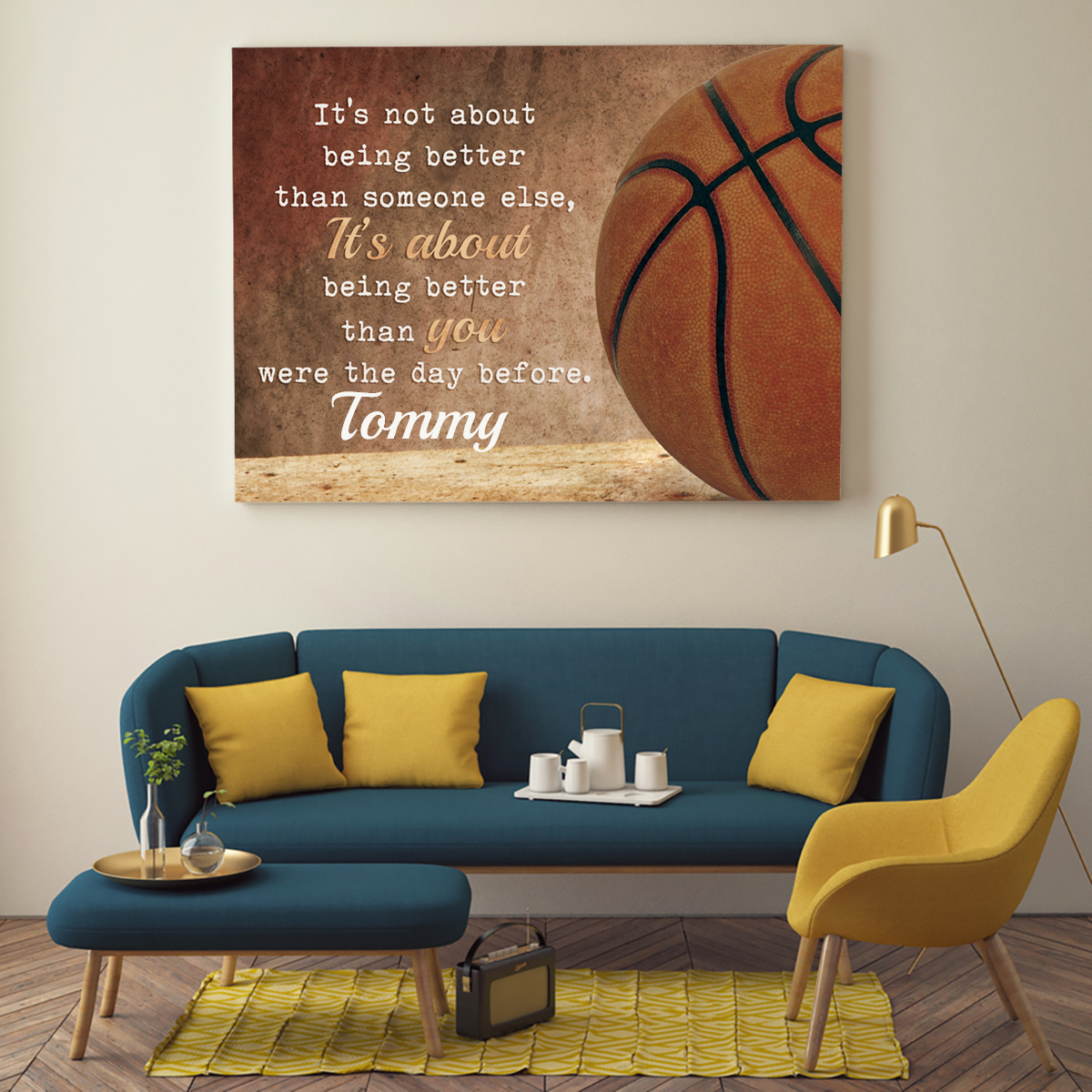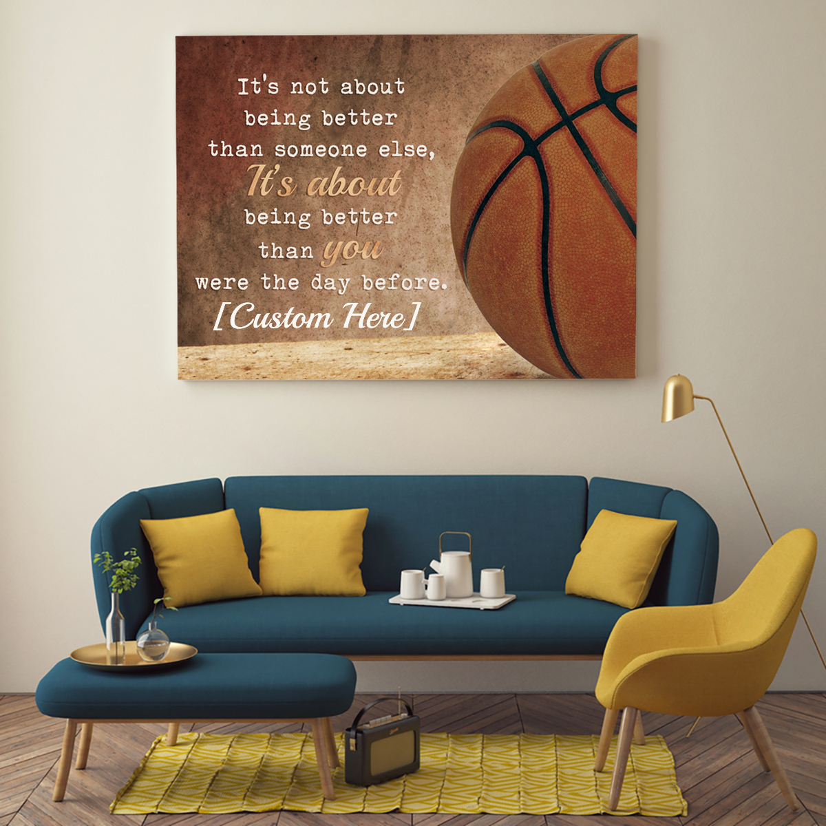 Let’s Shop Personalized It’s Not About Being Better Than Someone Else Basketball Framed Canvas Prints – Unframed Poster!