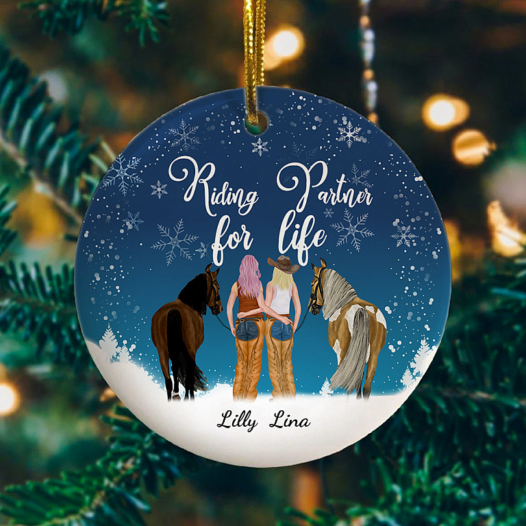 Let’s Shop Personalized Riding Partners for Life Best Friend Christmas Ornament Keepsake – Circle Ornament!