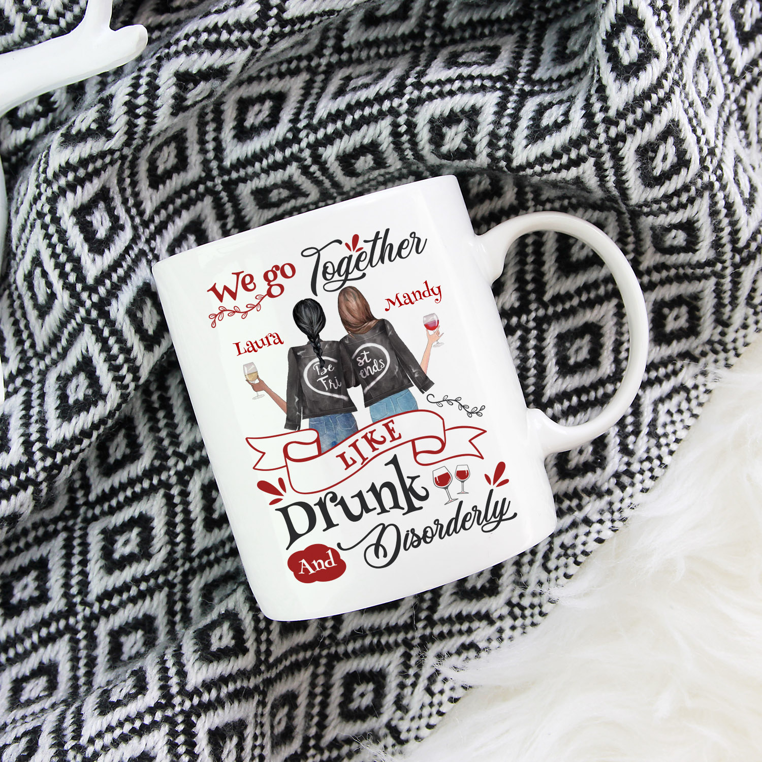 Let’s Shop Personalized We Go Together Like Drunk and Disorderly Ceramic Coffee Mug – Beer Stein – Water Bottle!
