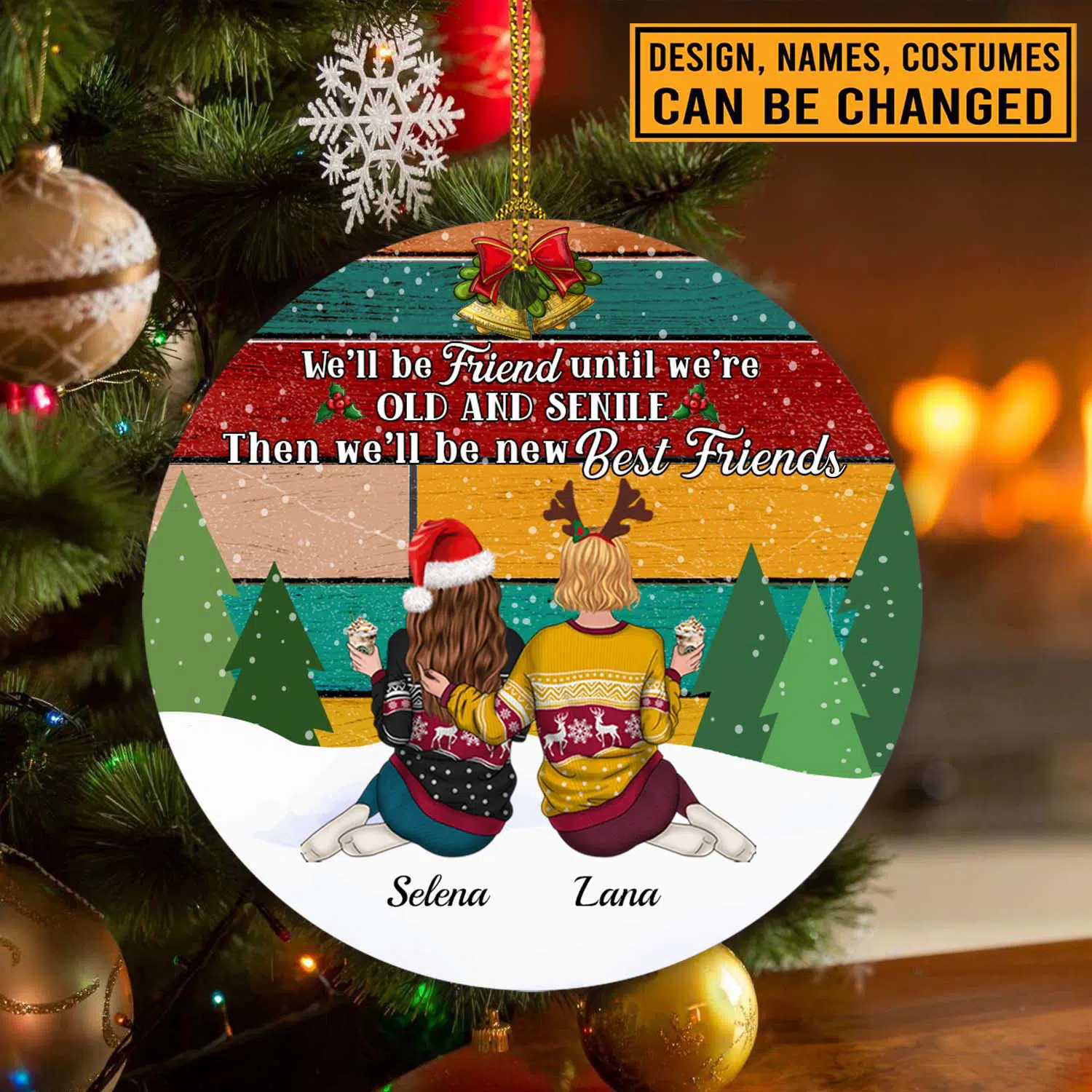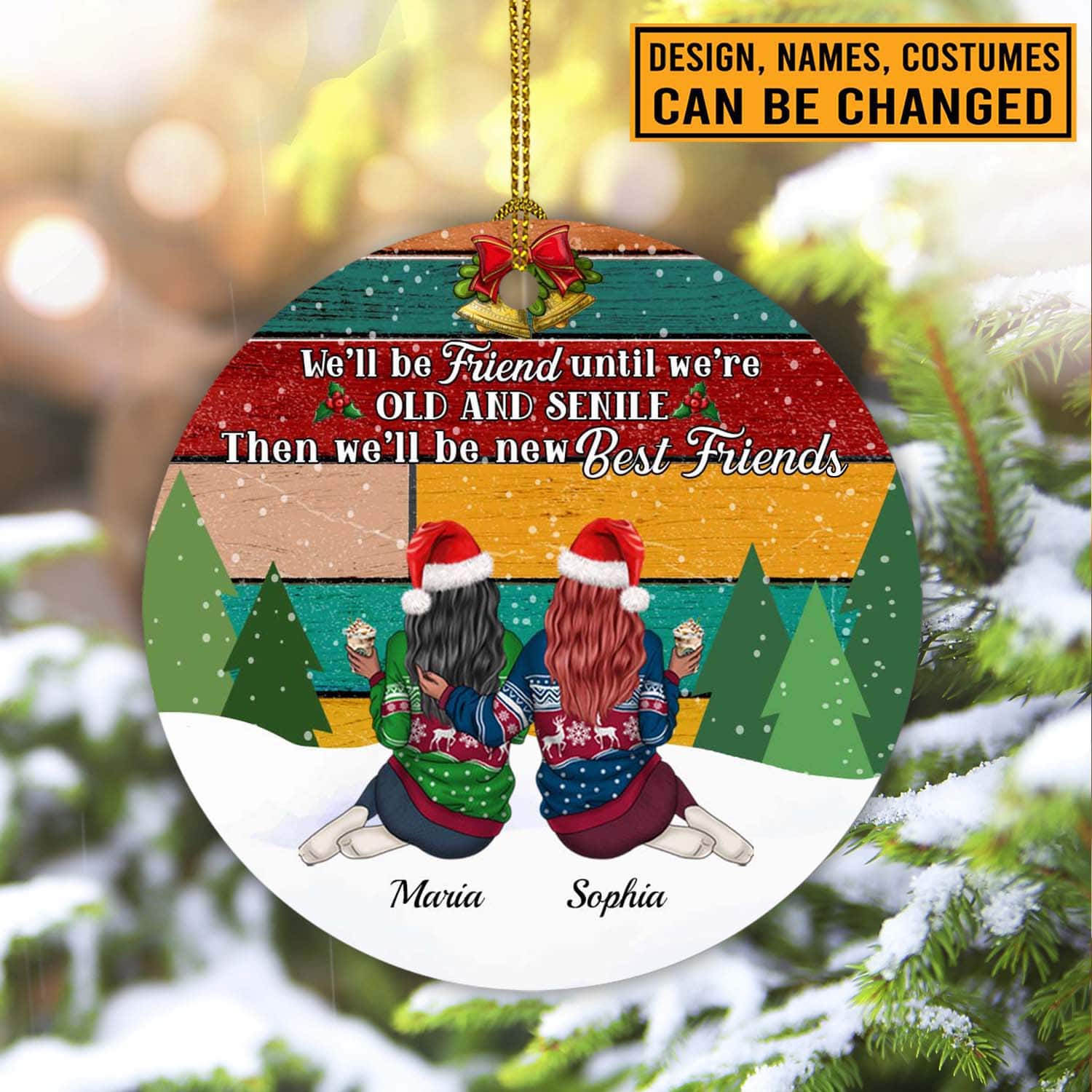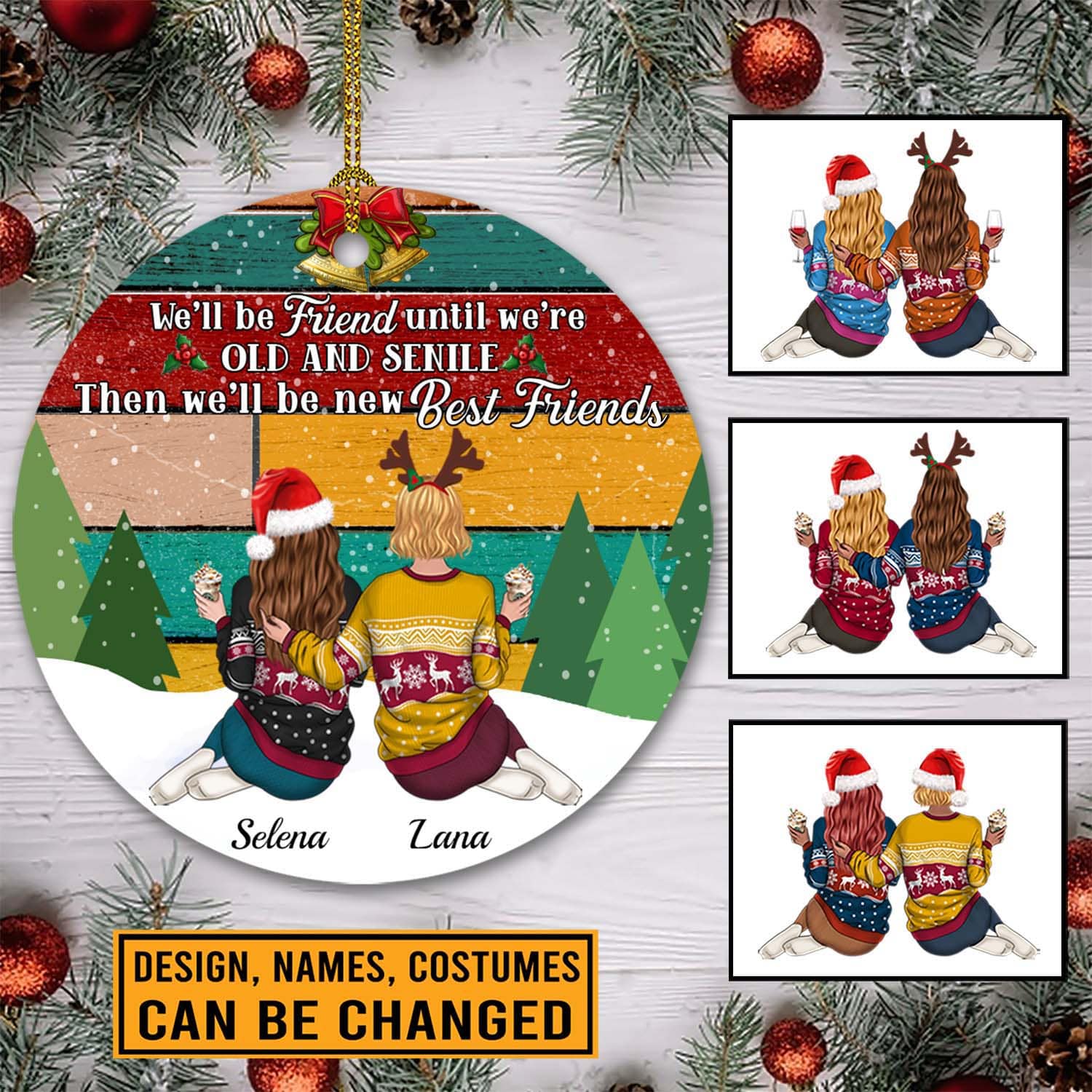 Let’s Shop Personalized We’ll Be Friends Until We’re Old And Senile Then We’ll Be New Best Friends Circle Christmas Ornament!