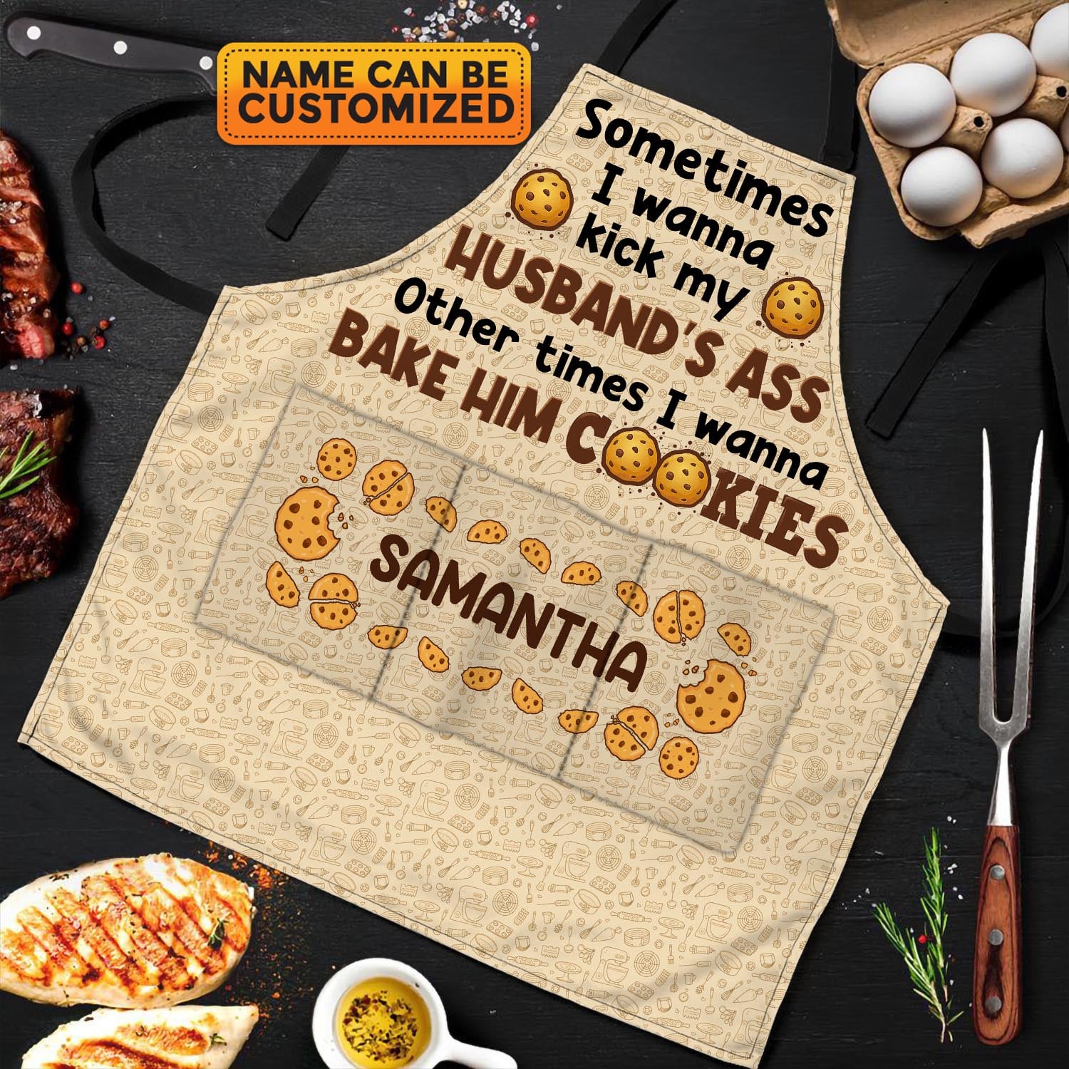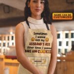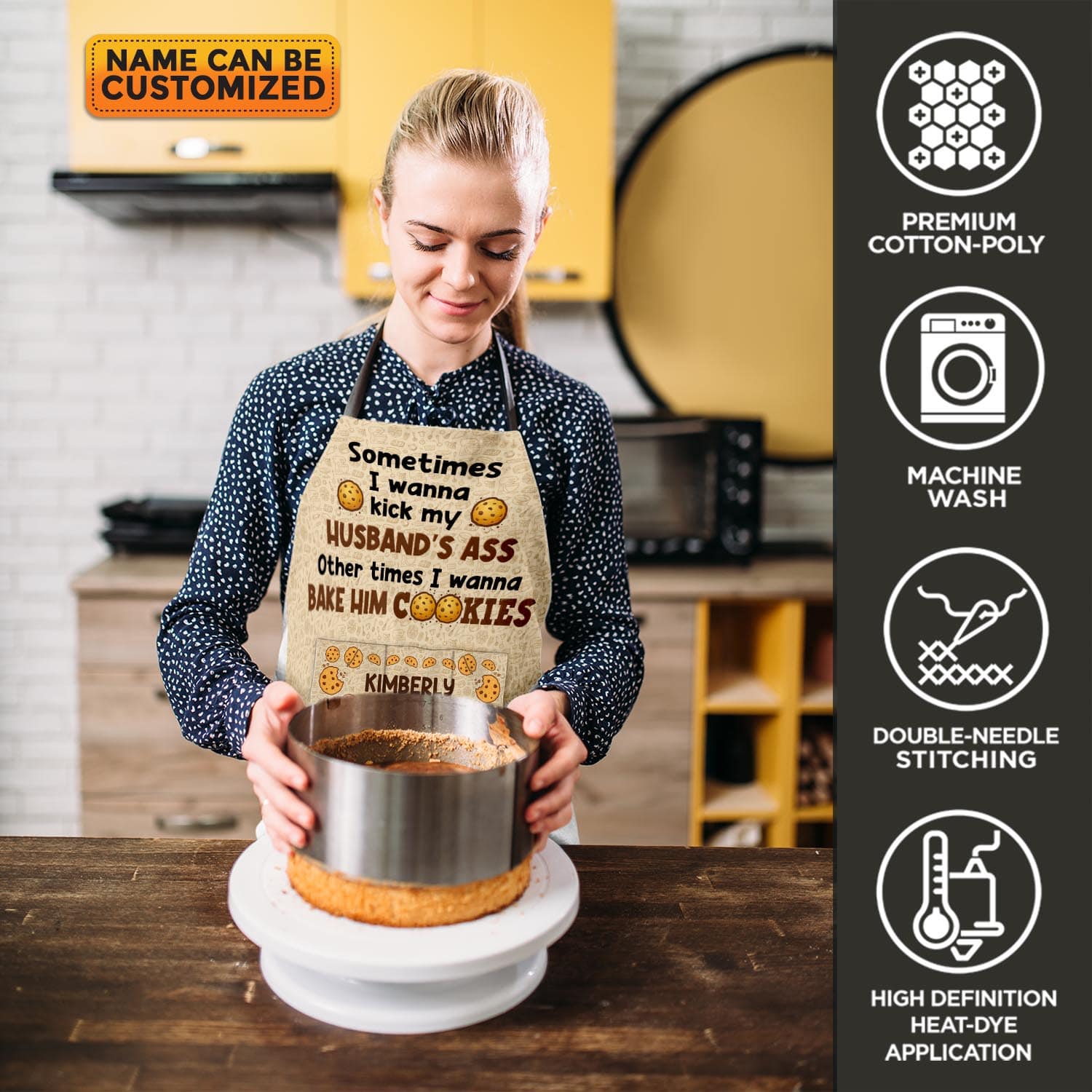Let’s Shop Personalized Best Wife Apron Gifts Sometimes I Wanna Kick My Husbands Ass Funny Cooking Apron With Three Pockets – Adjustable Neck Strap!