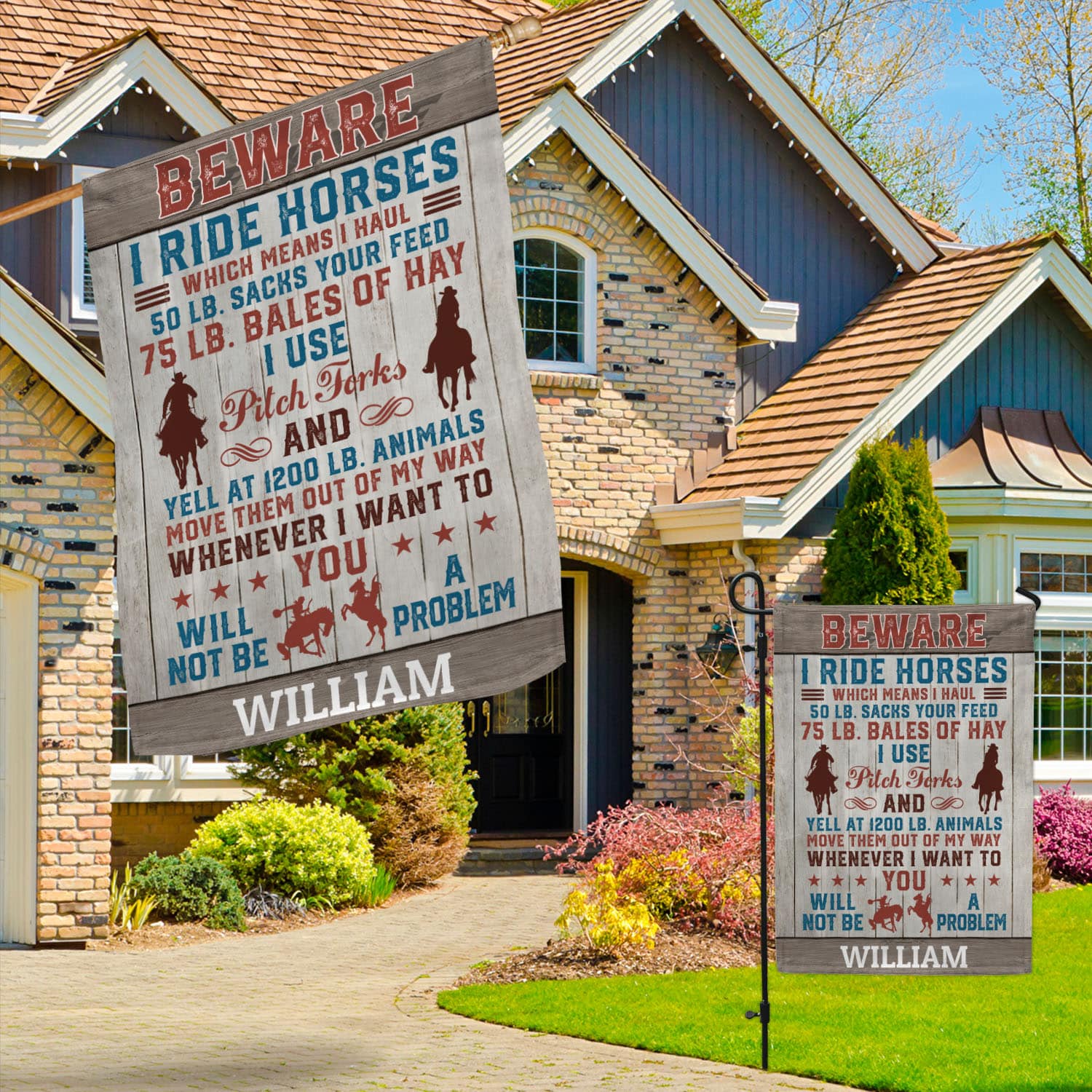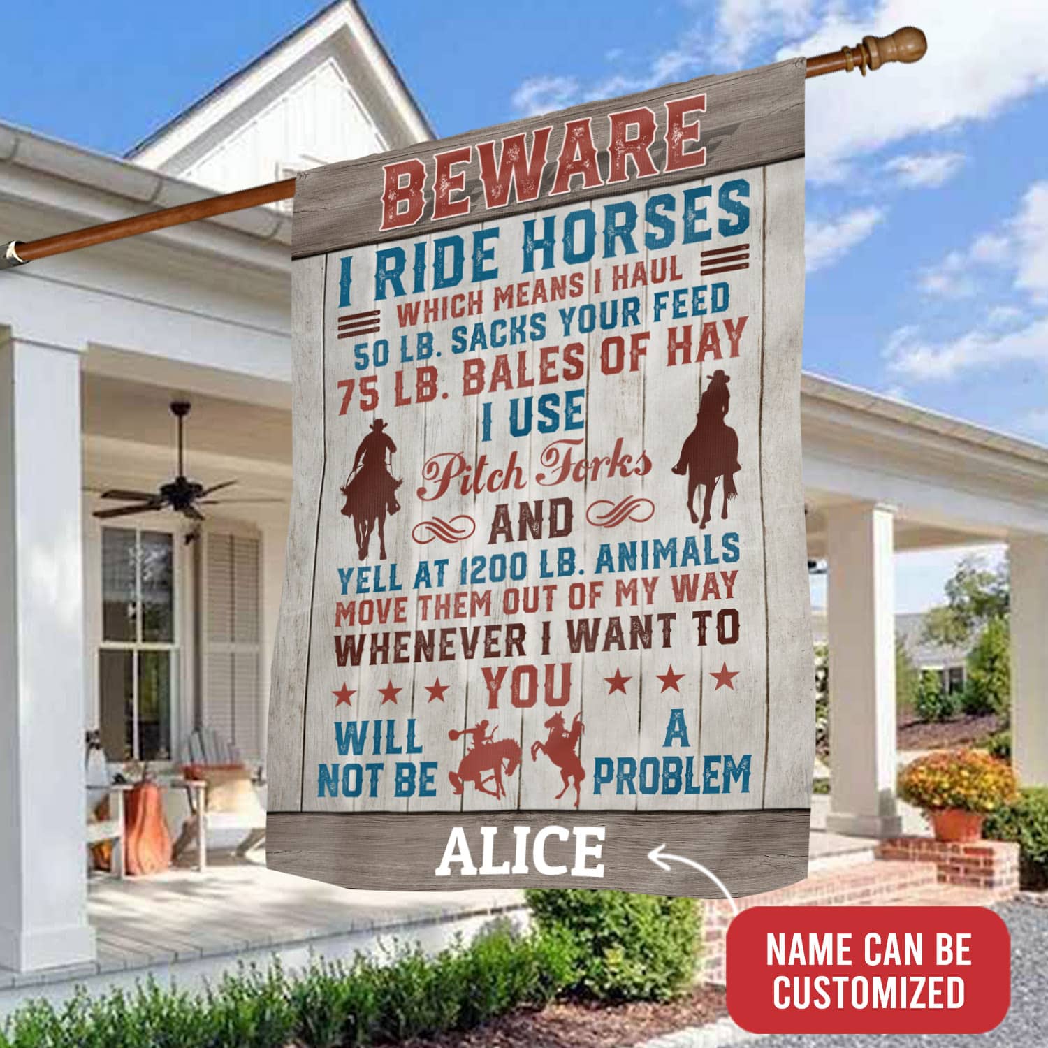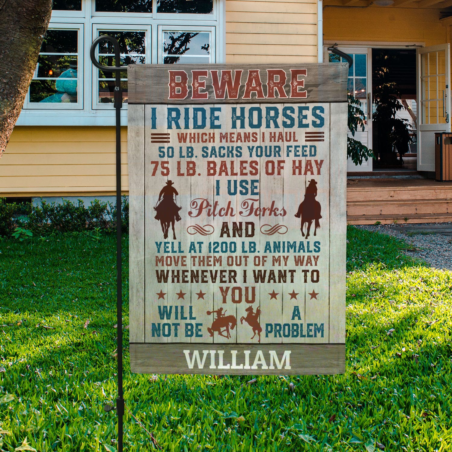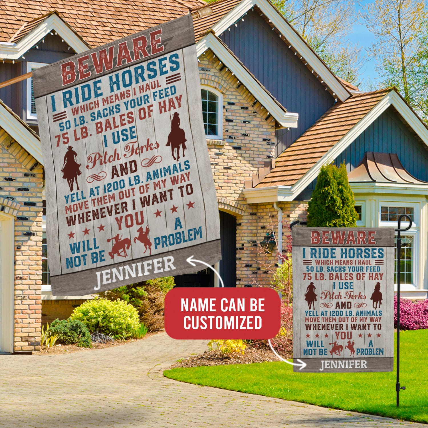 Let’s Shop Personalized Beware I Ride Horses Which Mean I Haul Garden Flag – House Flag – Customized Gift For Horse Lover!