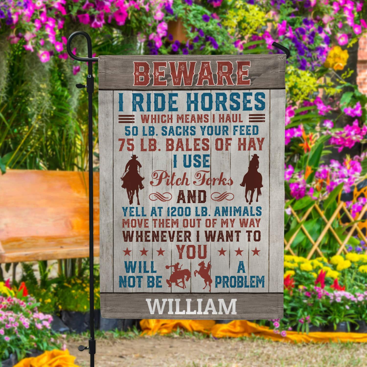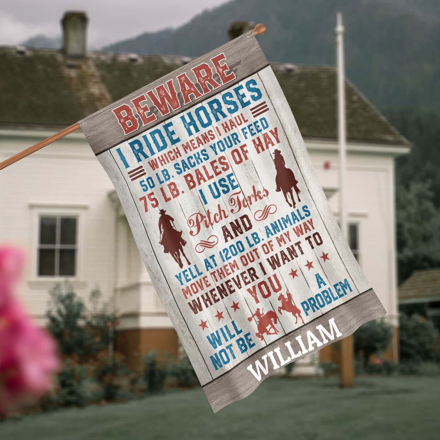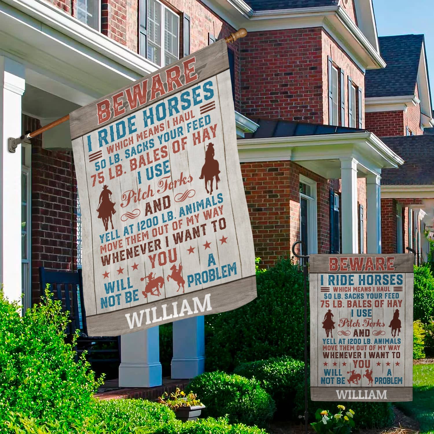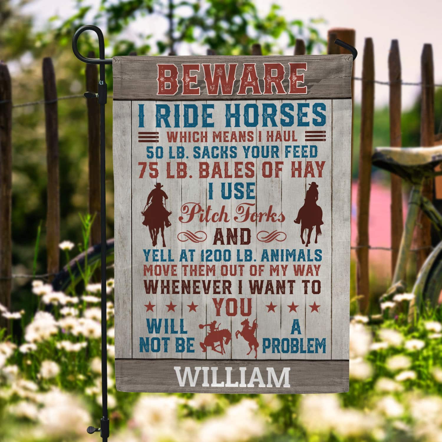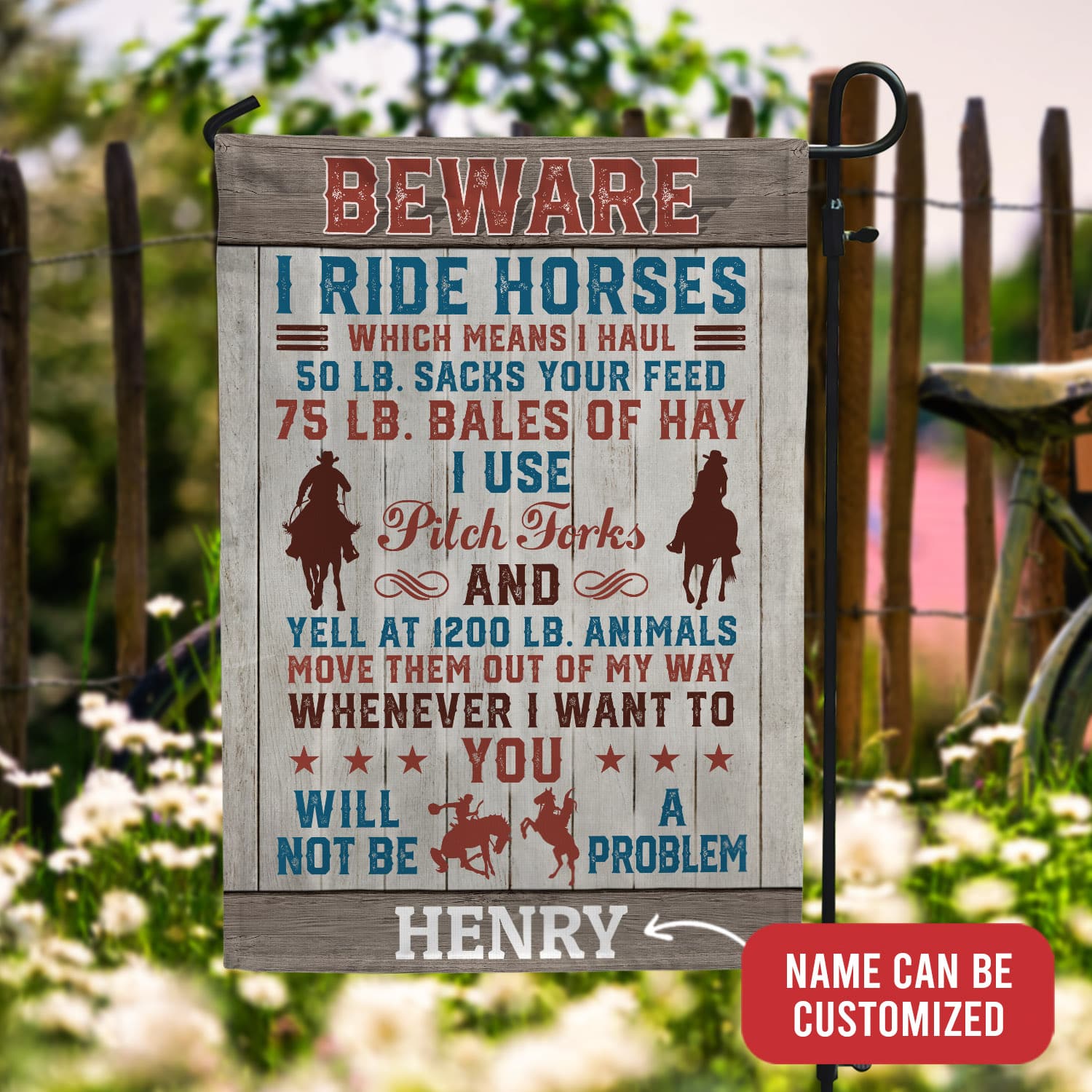 Let’s Shop Personalized Beware I Ride Horses Which Mean I Haul Garden Flag – House Flag – Customized Gift For Horse Lover!