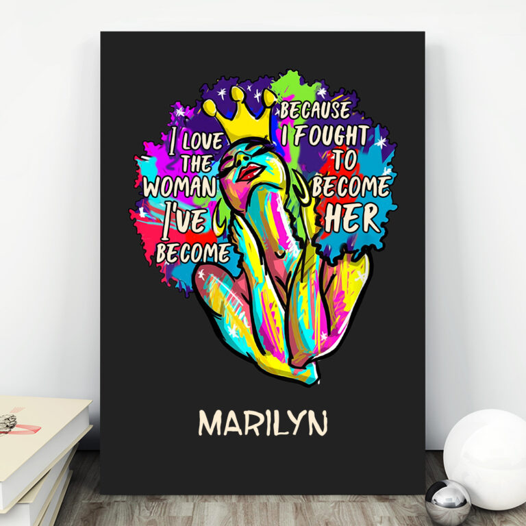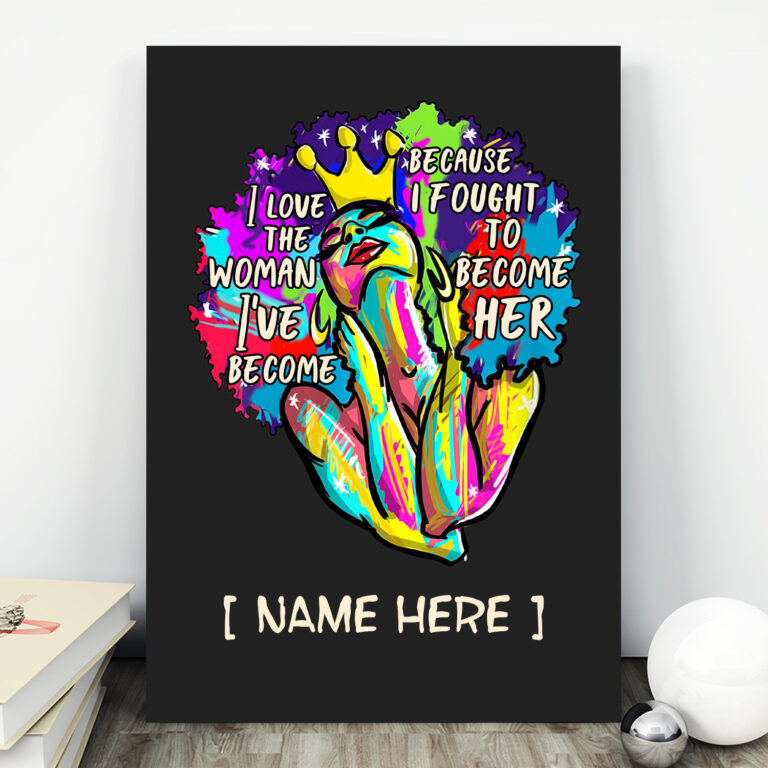 Let’s Shop Personalized I Love The Woman I’ve Become Because I Fought To Become Her Framed Canvas – Unframed Poster!