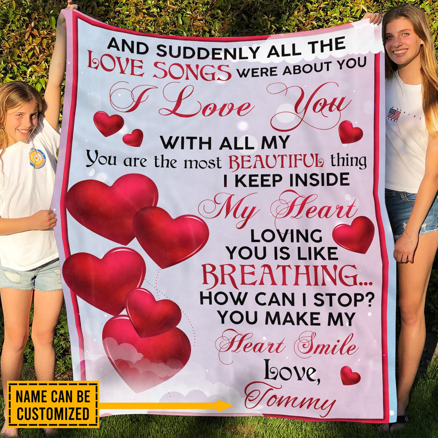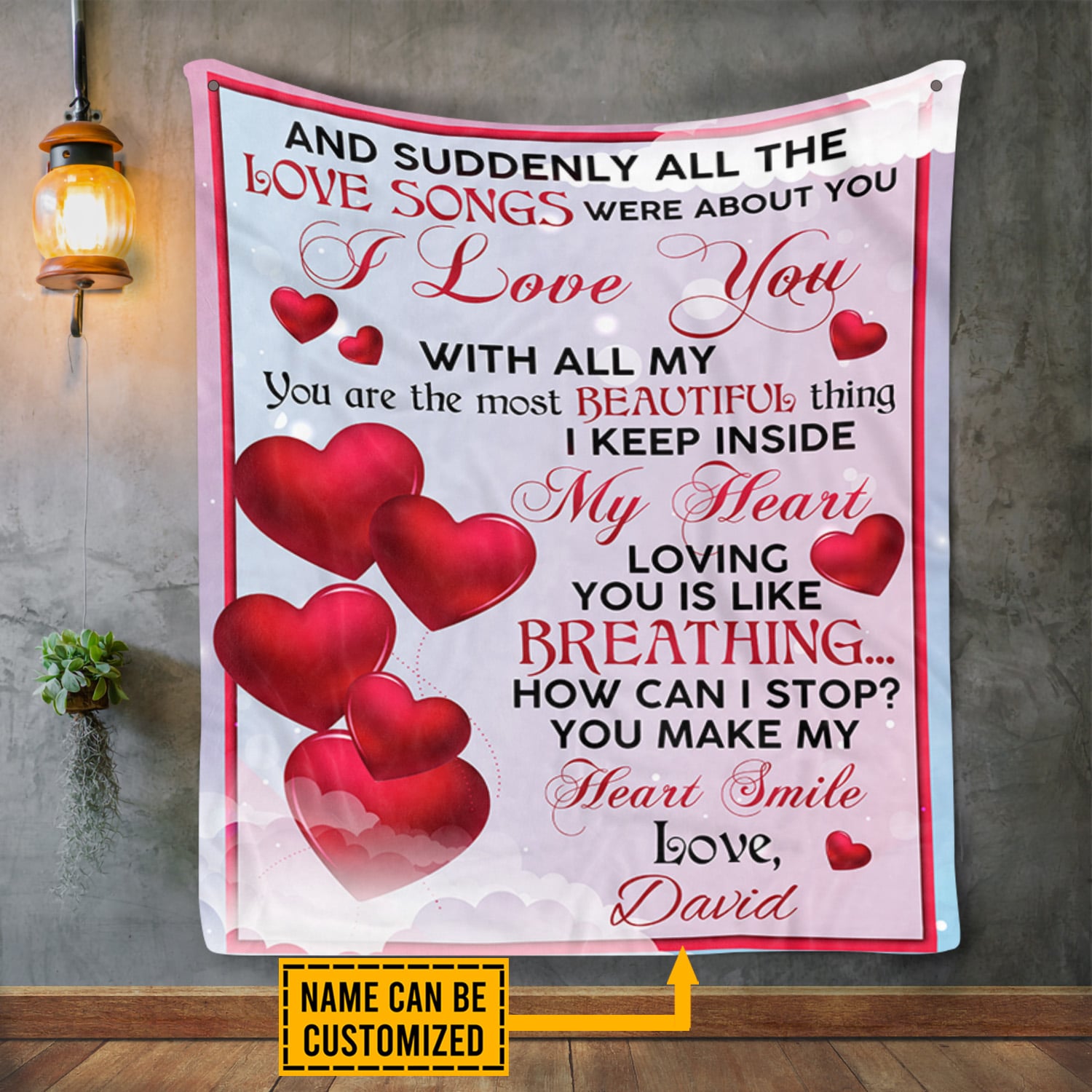 Let’s Shop Personalized Loving You Is Like Breathing Fleece Blanket – Mink Sherpa Blanket – Woven Blanket – Love Blanket!