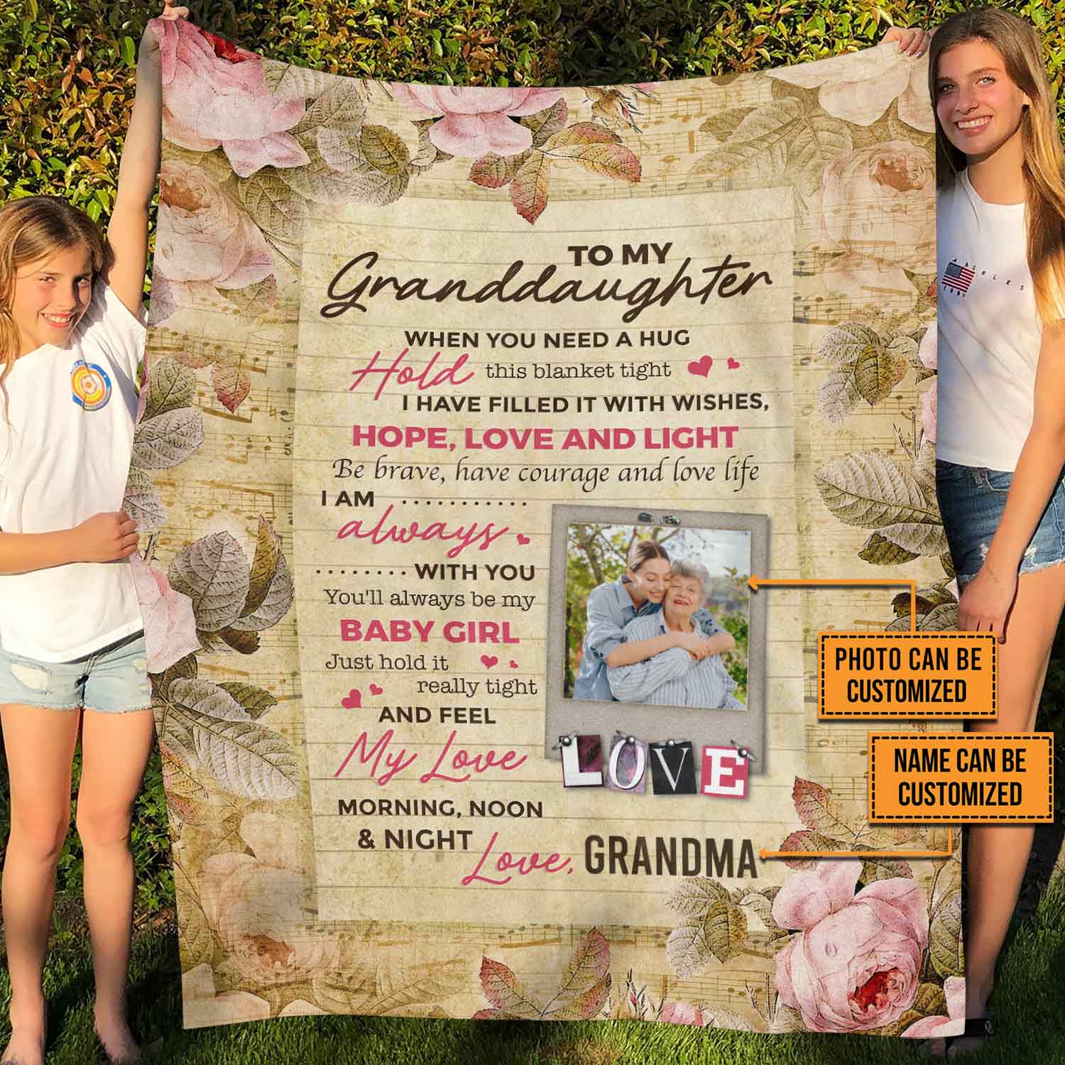 Let’s Shop Personalized Custom Photo Grandma To My Granddaughter When You Need a Hug Fleece Blanket – Mink Blanket!
