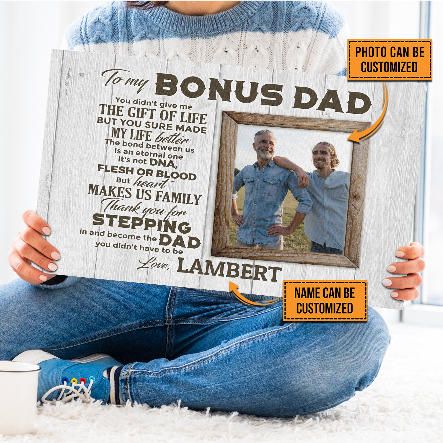 Are you spending too much time to find creative merchandise for you or suitable & special gifts for your mommy, your daddy, your son, your daughter, your children, your friends or someone you love? The struggle is over because we have various Bonus Dad Shirt, Bonus Dad Quotes, Bonus Dad Gifts, Personalized Bonus Dad Gifts, Personalized Fathers Day Gifts Bonus Dad, Personalized Bonus Dad Canvas which will make perfect presents for your beloveds. In order to make your present stand out, we have created lots of unique and awesome customized photo gifts & personalized designs.