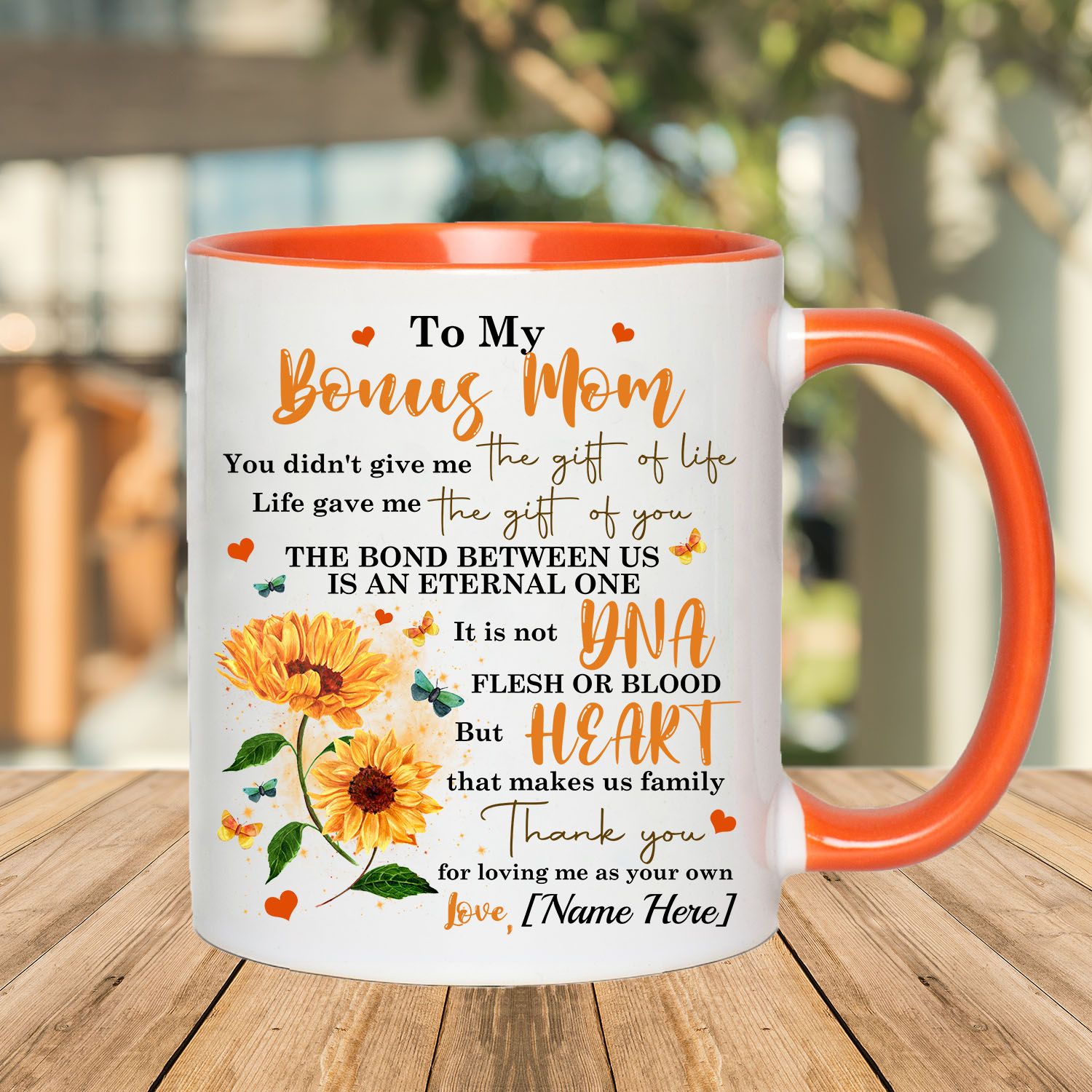 Let’s Shop Personalized To My Bonus Mom You Didn’t Give Me The Gift Of Life Life Gave Me The Gift Of You Accent Coffee Mug!