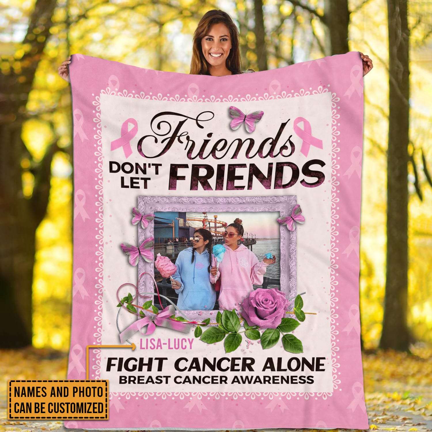 Let’s Shop Personalized Breast Cancer Gifts Friends Don’t Let Friends Fight Cancer Alone Fleece Blanket!