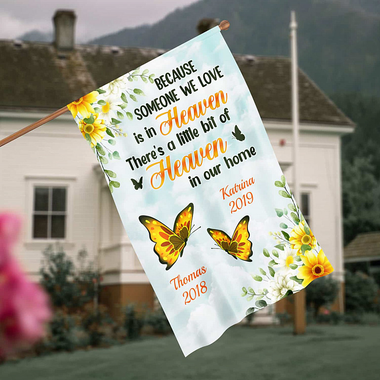 Are you spending too much time to find creative merchandise for you or suitable & special gifts for your mommy, your daddy, your son, your daughter, your children, your friends or someone you love? The struggle is over because we have various Personalized Memorial Flag, Personalized Family Memorial Flag, Personalized Butterfly Memorial Flag, Personalized Quote Family Flag, Personalized Someone We Love Flag, Sympathy Gift, Bereavement Gift, Loss Of Mother, Loss Of Father, Loss Of Family Flag which will make perfect presents for your beloveds. In order to make your present stand out, we have created lots of unique and awesome customized photo gifts & personalized designs.