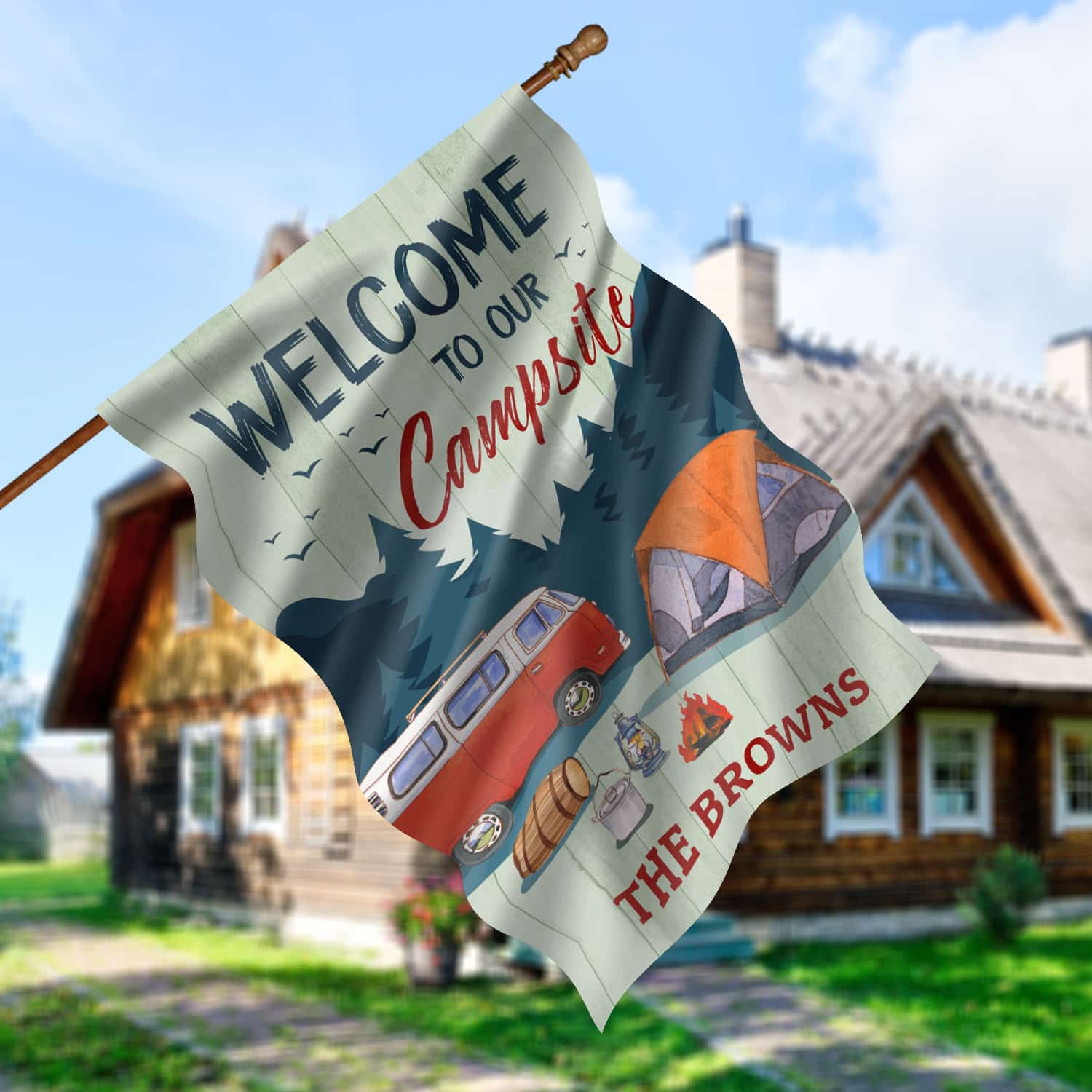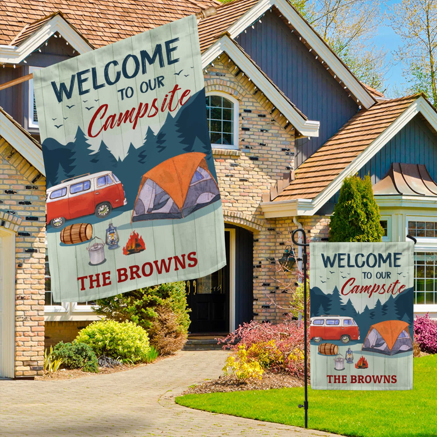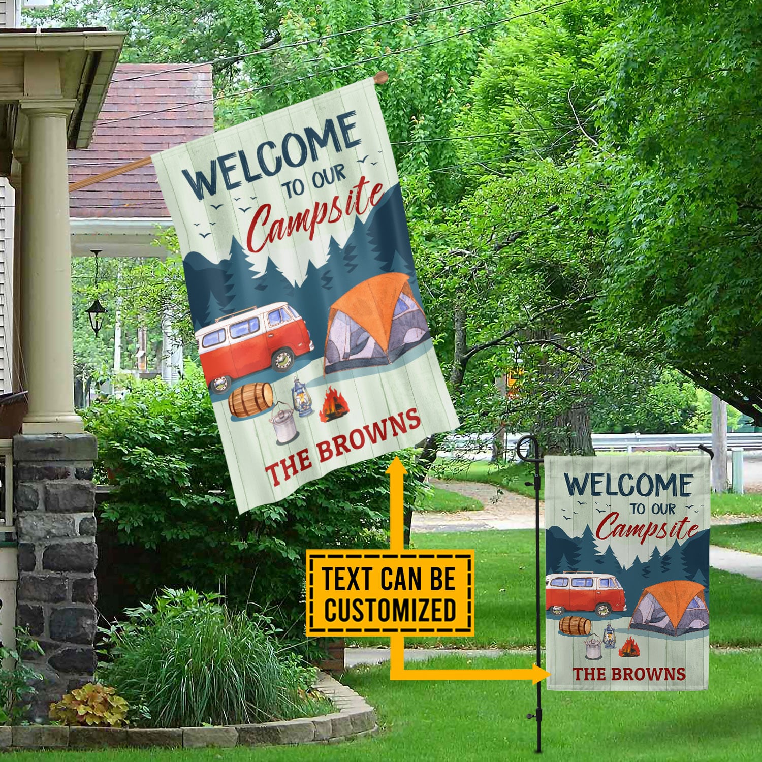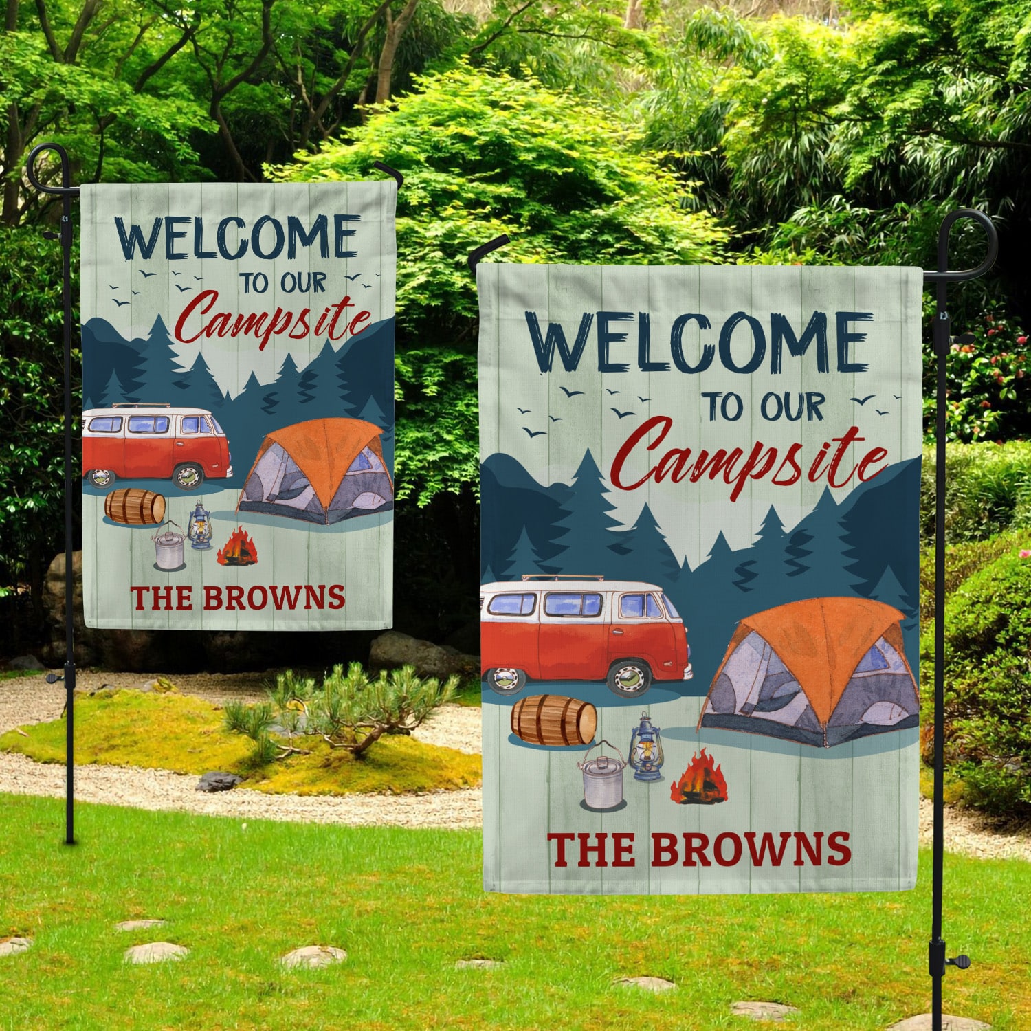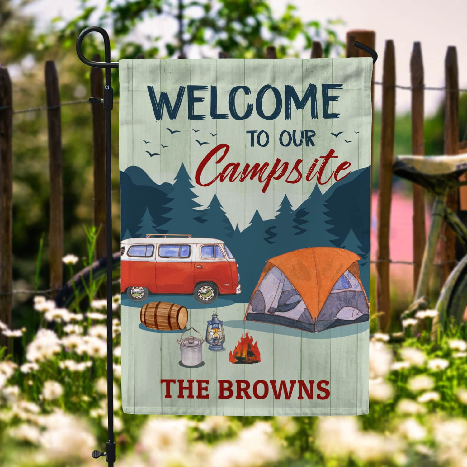Let’s Shop Personalized Camping Flags Welcome to Our Campsite Garden Flag!
