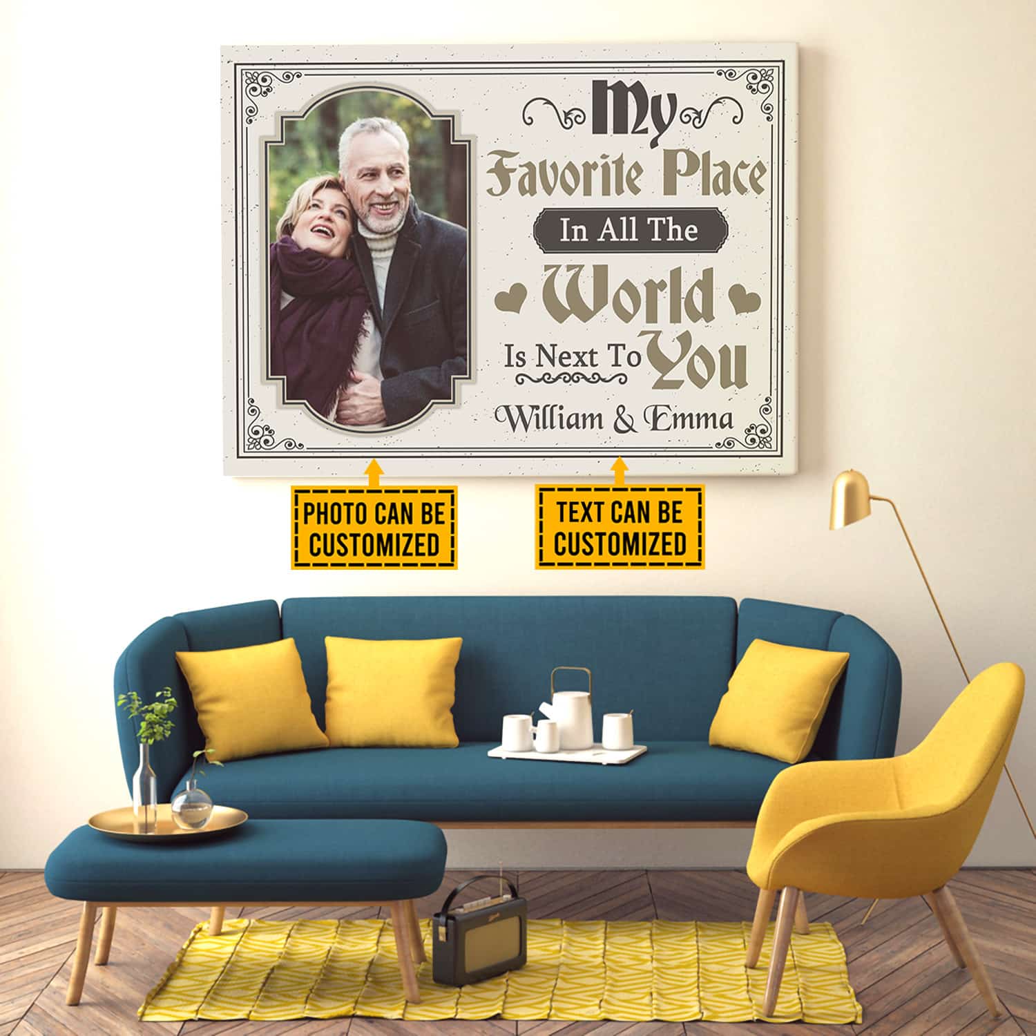 Let’s Shop Personalized Photo My Favorite Place In All The World Is Next To You Couple Framed Canvas Prints – Unframed Poster!