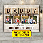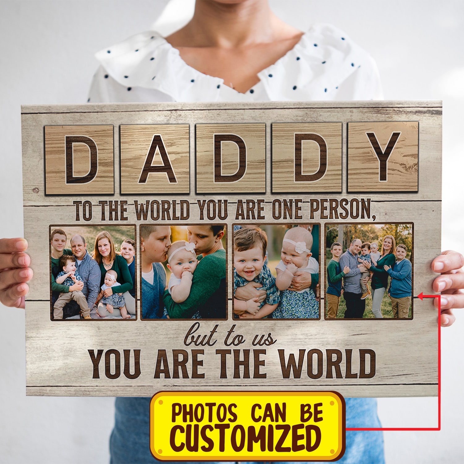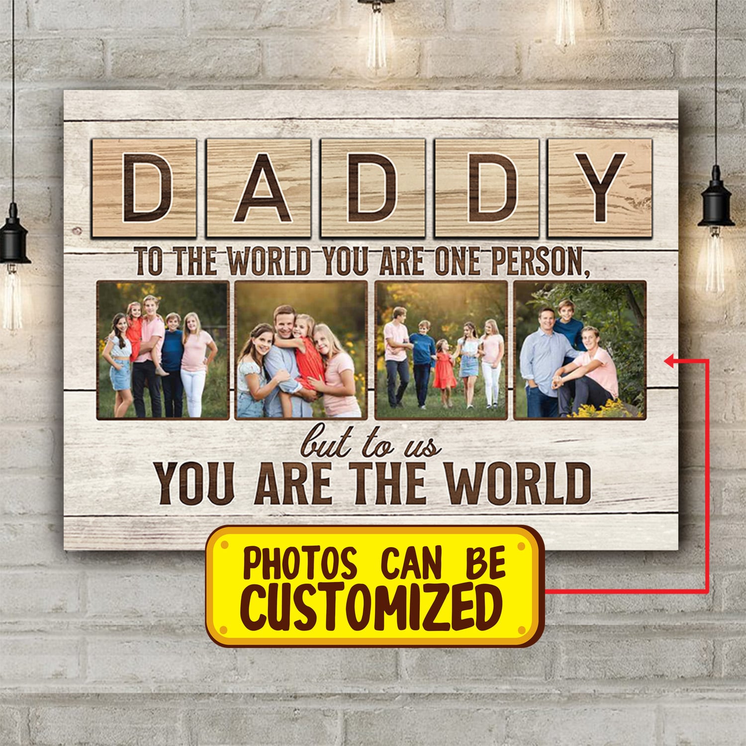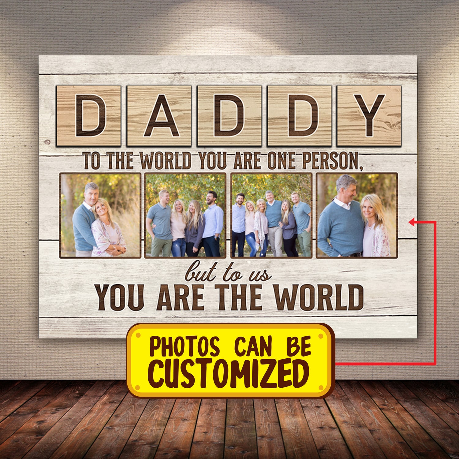 Let’s Shop Custom Photo Daddy To The World You Are One Person But To Us You Are The World Framed Canvas – Unframed Poster!
