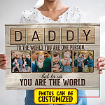 Are you spending too much time to find creative merchandise for you or suitable & special gifts for your mommy, your daddy, your son, your daughter, your children, your friends or someone you love? The struggle is over because we have various Daddy to Us You Are the World Canvas Poster, Personalized Canvas for Dad, Personalized Dad Canvas, Personalized Gifts for Dad Canvas, Personalized Wall Art for Dad, Personalized Daughter and Dad Wall Art, Fathers Day Gifts for Dad Photo Canvas, Photo Canvas for Dad, Dad Custom Photo Canvas, Dad Photo Canvas which will make perfect presents for your beloveds. In order to make your present stand out, we have created lots of unique and awesome customized photo gifts & personalized designs.