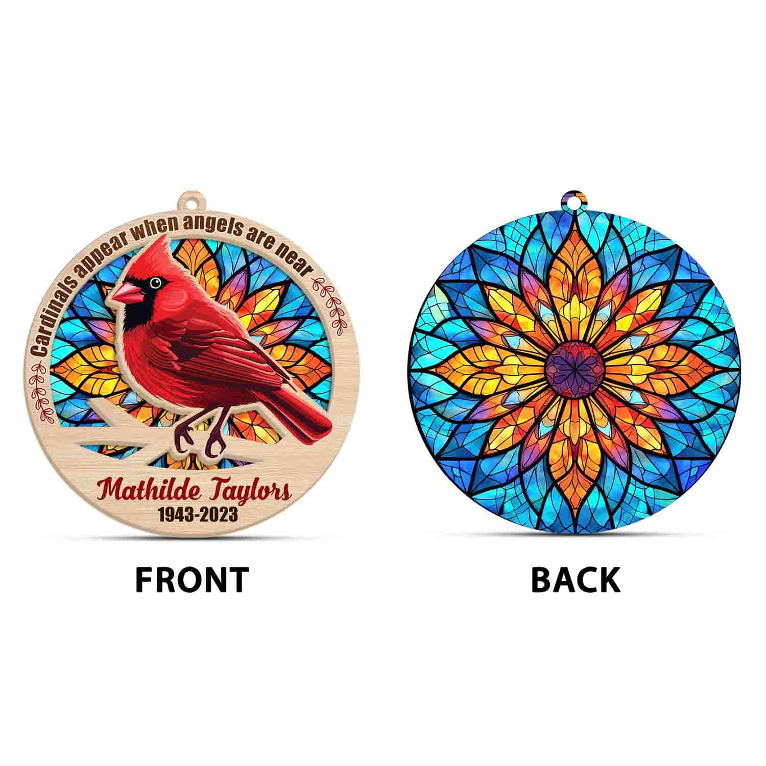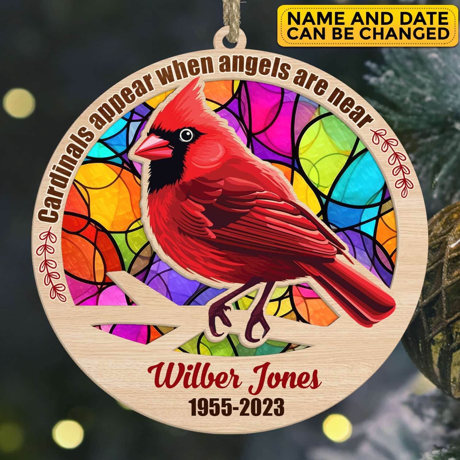 Let’s Shop Personalized Cardinals Appear When Angels Are Near Memorial Suncatcher Ornament Keepsake!