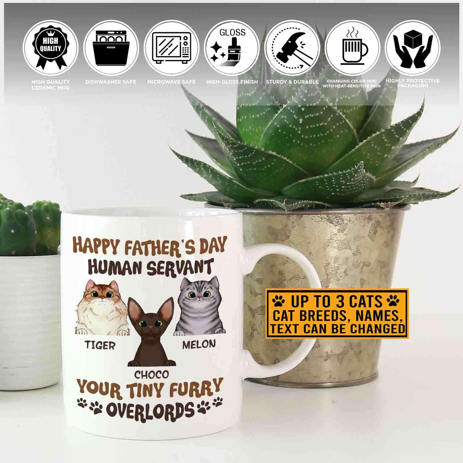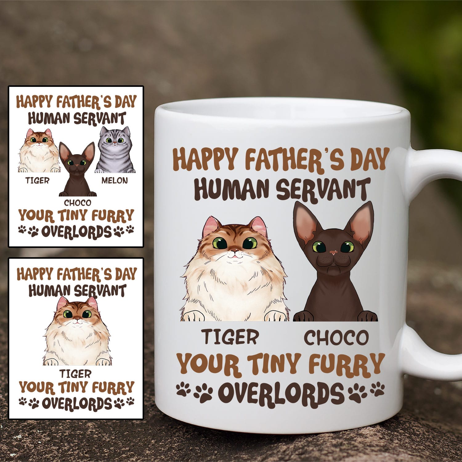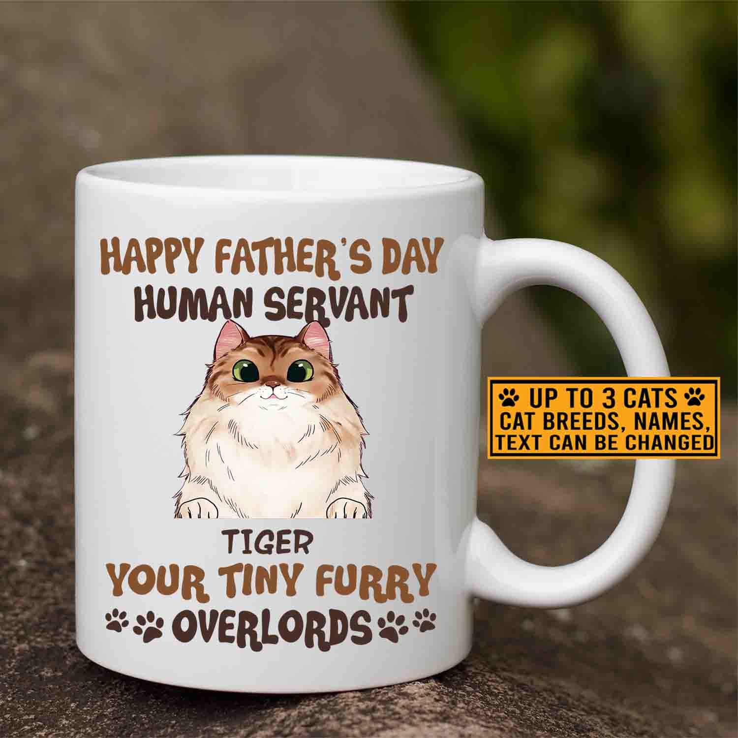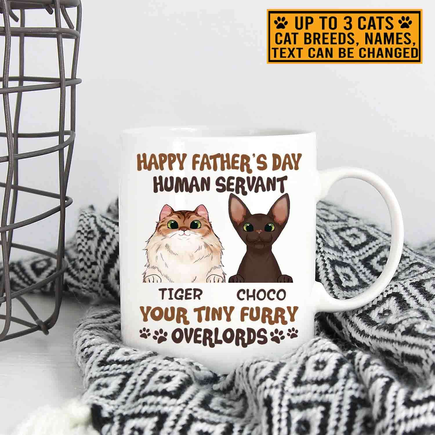 Let’s Shop Personalized Cat Breeds Mug Happy Father’s Day Human Servant Your Tiny Furry Overlords Ceramic Coffee Mug, Accent Mug!
