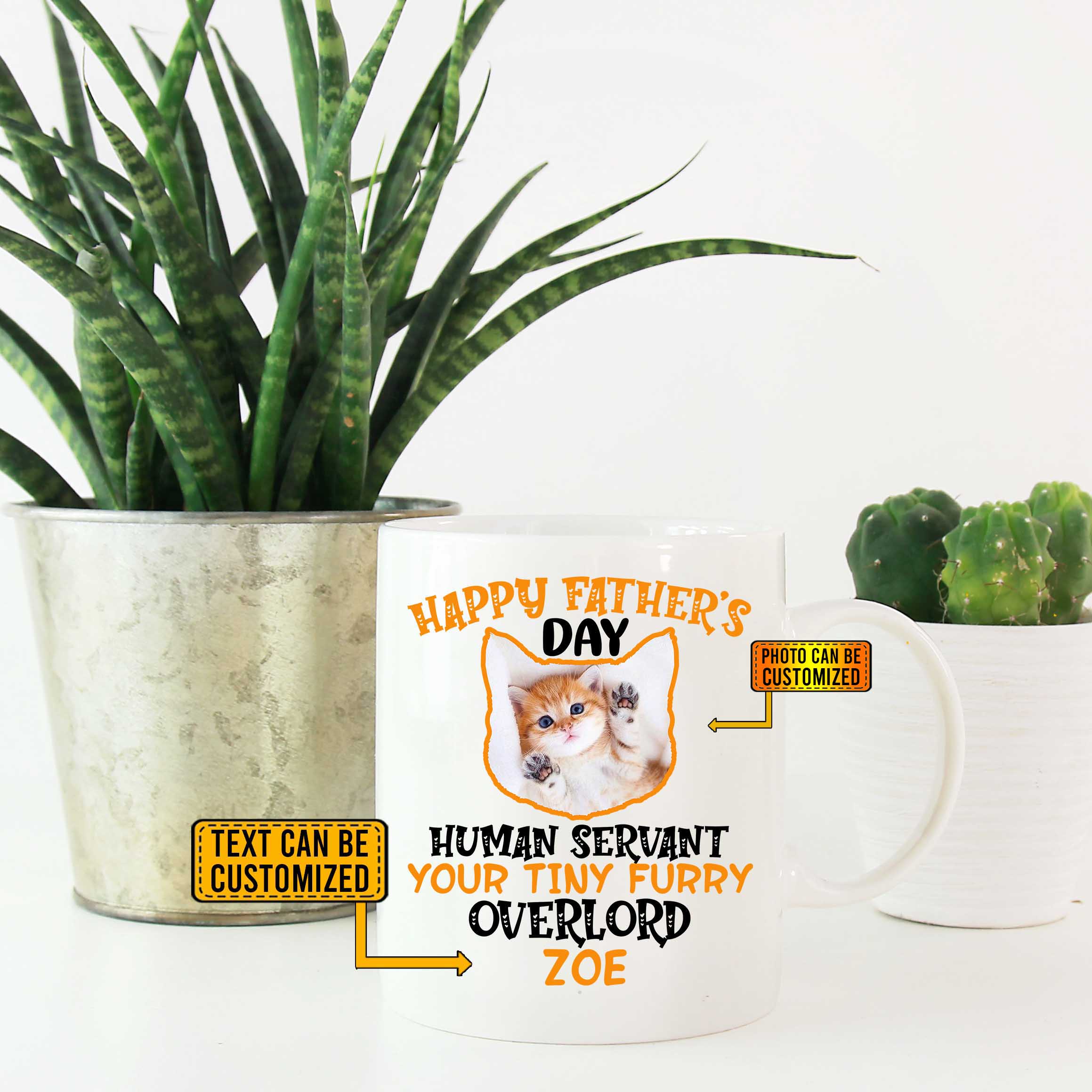 Let’s Shop Personalized Photo Happy Father’s Day Human Servant Your Tiny Furry Ceramic Coffee Mug – Beer Stein – Water Bottle!