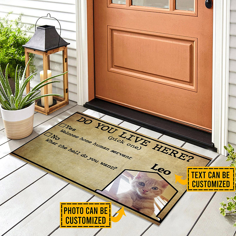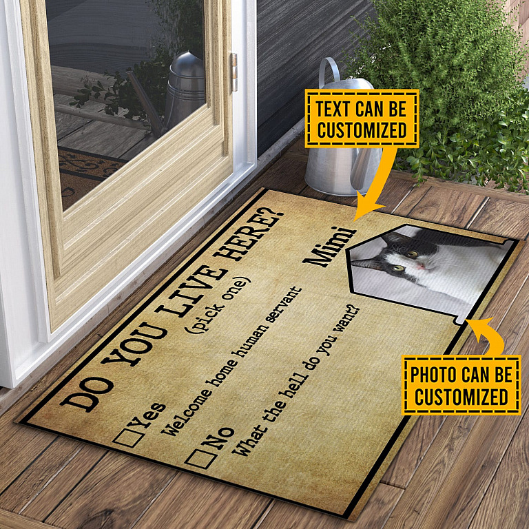 Let’s Shop Personalized Custom Photo Cat Do You Live Here Yes Welcome Home Human Servant Indoor Outdoor Doormat!