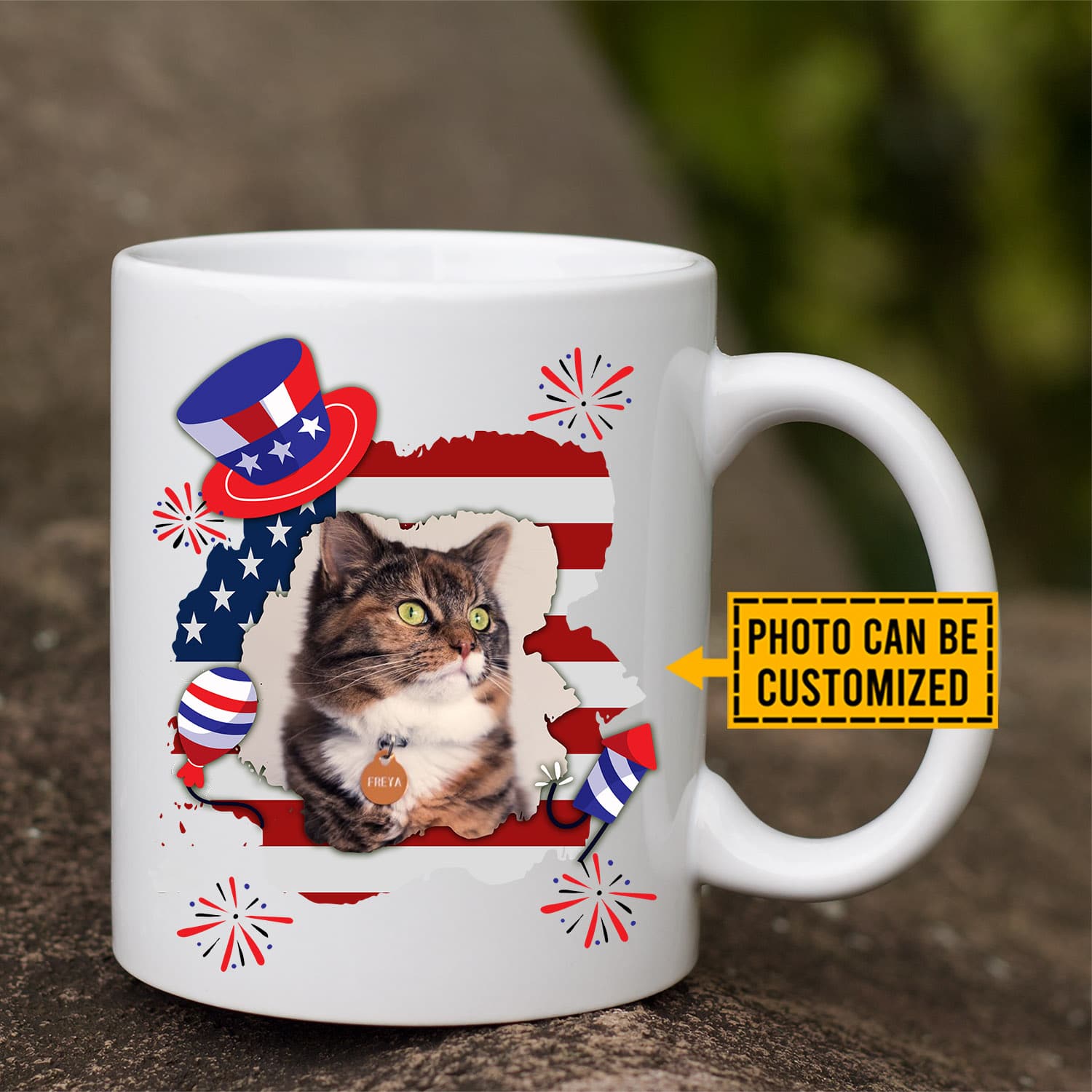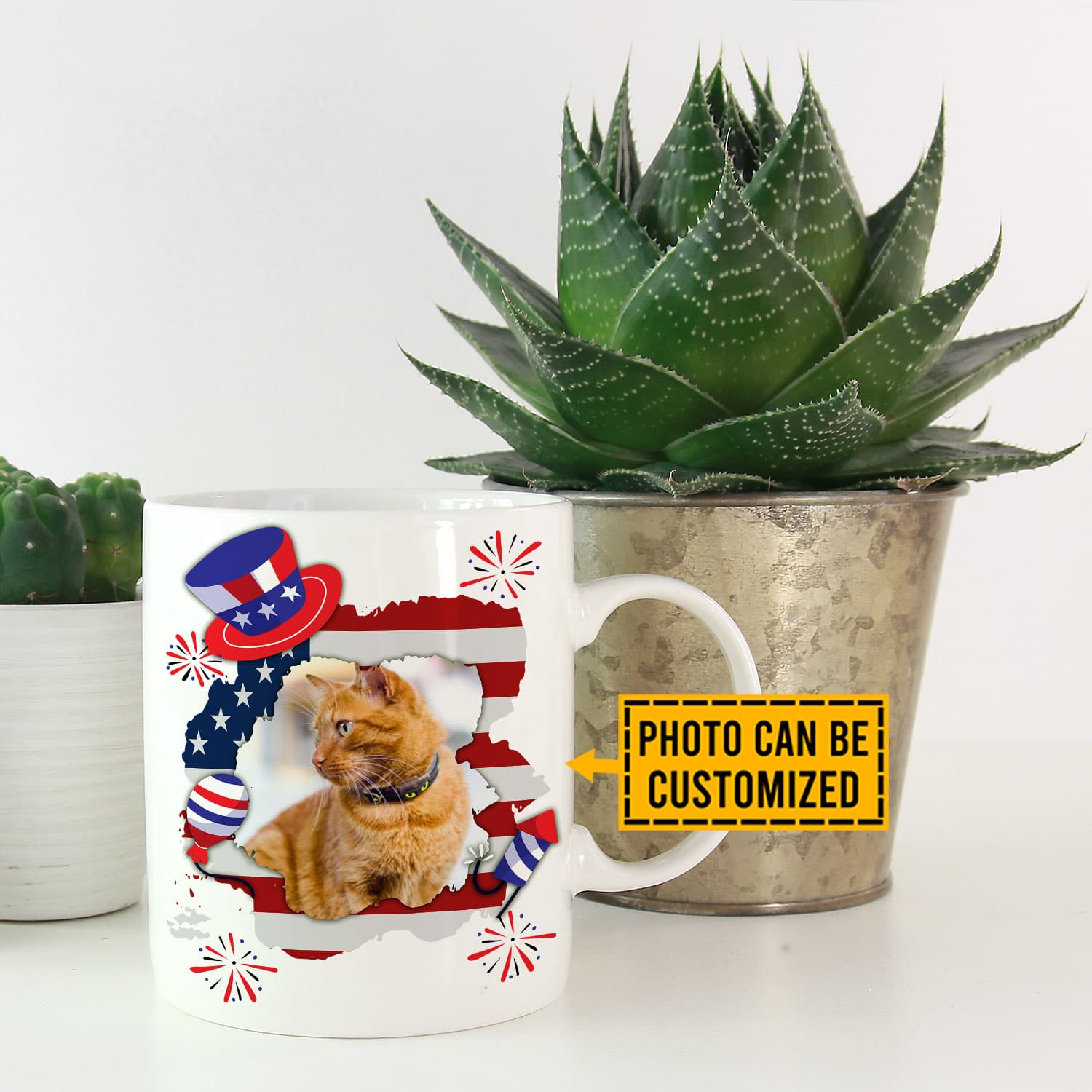 Let’s Shop Personalized Photo Cat Happy 4th Of July American Ceramic Coffee Mug – Beer Stein – Water Bottle!