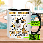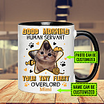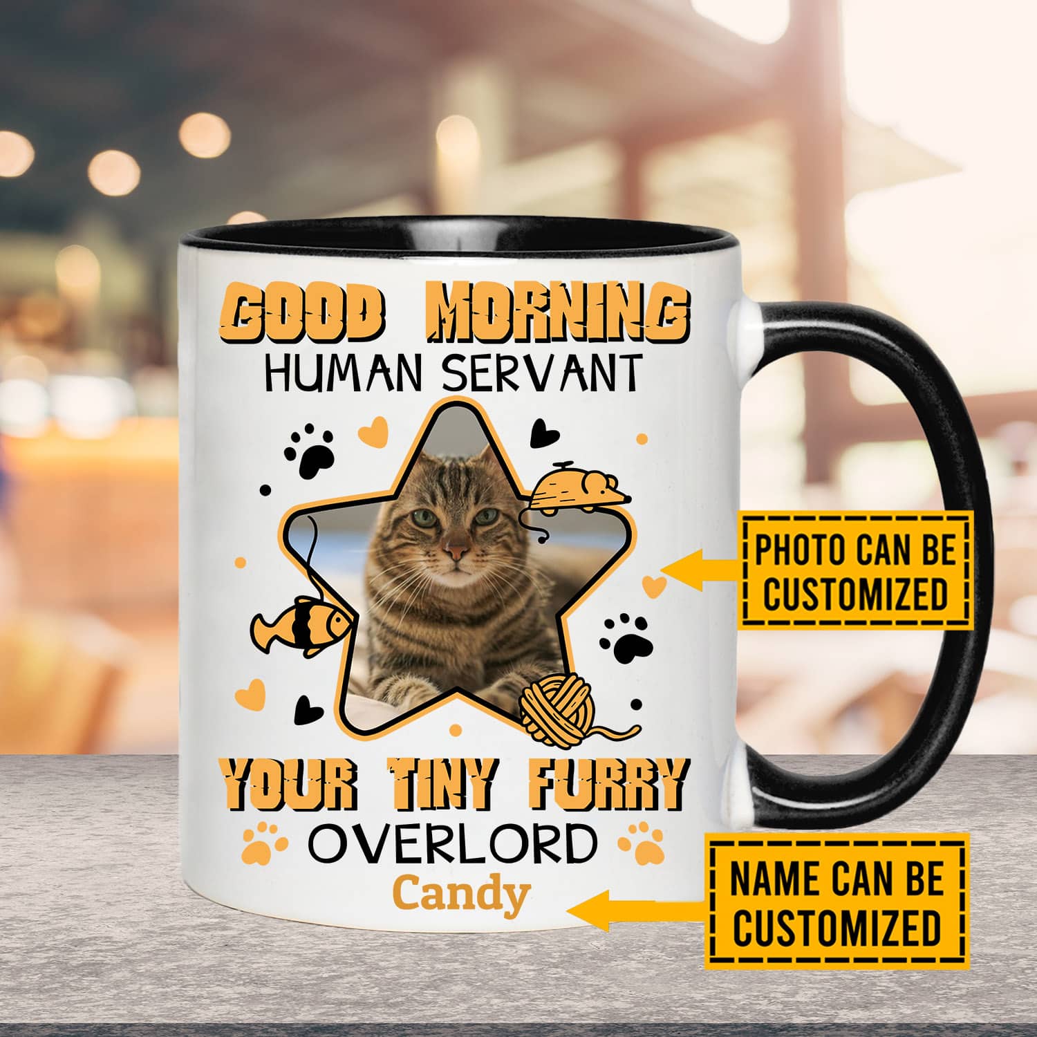 Let’s Shop Personalized Photo Good Morning Human Servant Your Tiny Furry Overlord Funny Cat Ceramic Accent Coffee Mug!