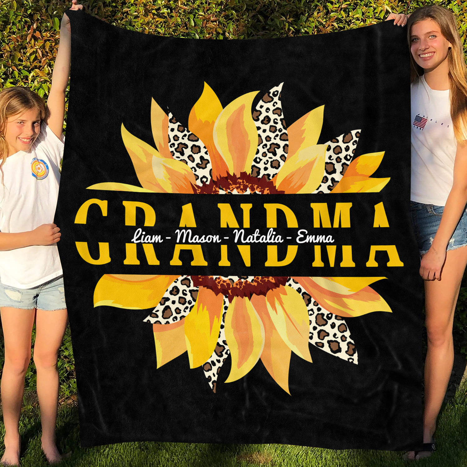 Are you spending too much time to find creative merchandise for you or suitable & special gifts for your mommy, your daddy, your son, your daughter, your children, your friends or someone you love? The struggle is over because we have various Grandma Sunflower Blanket, Grandma to Granddaughter Blanket with Sunflowers on It, Throw Blanket from Kids to Grandma, Personalized Blankets for Grandma with Names for Kids, Grandma Blanket from Kids, Personalized Children of Grandma Nana On Blanket, Grandchild Blanket, Sunflower Nana Quilt, Nana and Kids Name Blanket which will make perfect presents for your beloveds. In order to make your present stand out, we have created lots of unique and awesome customized photo gifts & personalized designs.
