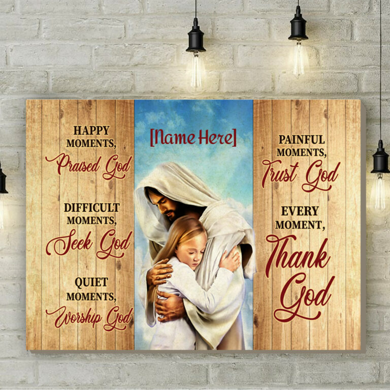 Let’s Shop Personalized Jesus Hugs Happy Moments Praise God Difficult Moments Seek God Framed Canvas – Unframed Poster!