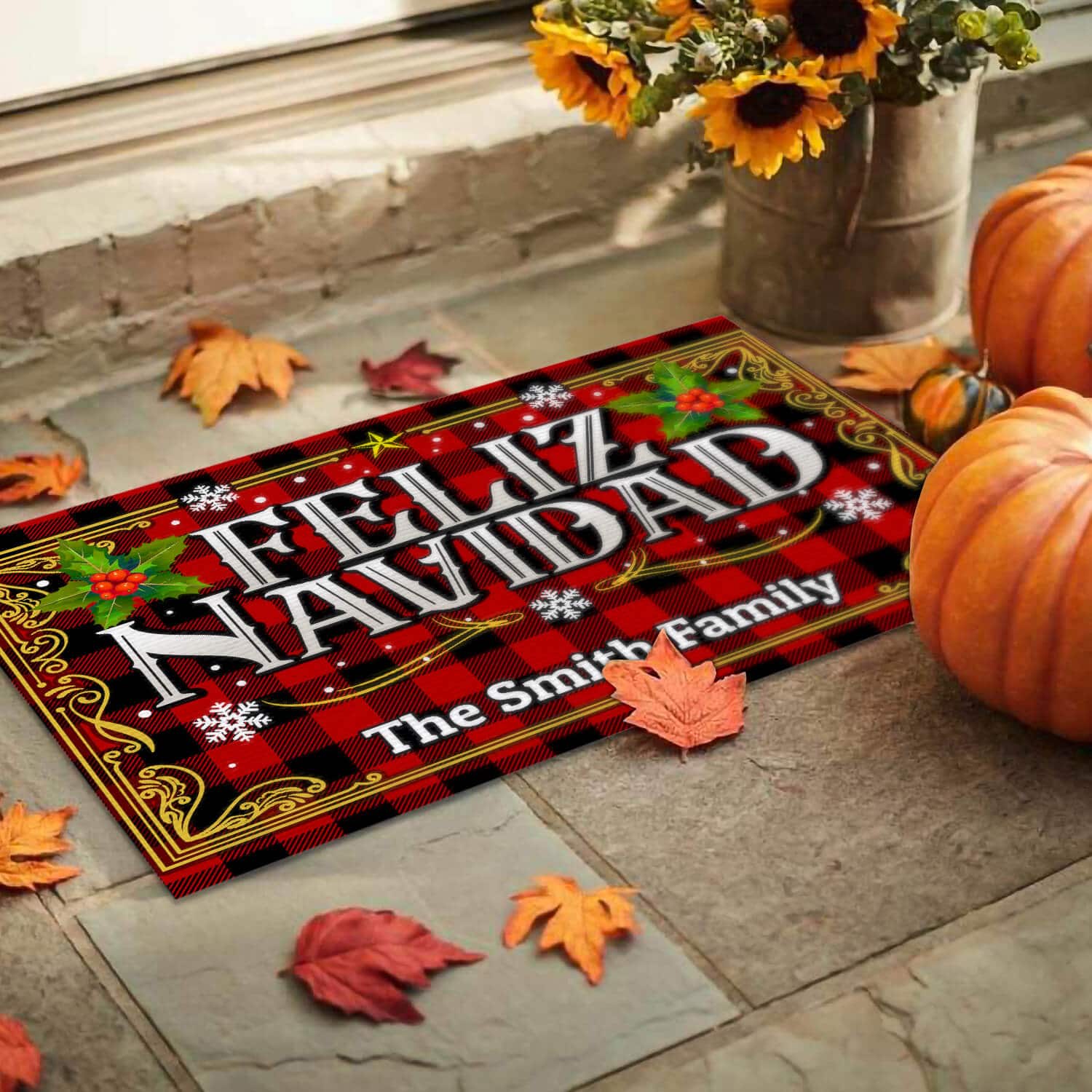 Let’s Shop Personalized Family Name Feliz Navidad Doormat – Custom Christmas Welcome Mat!