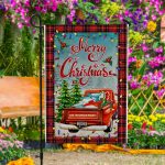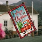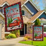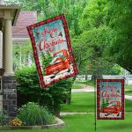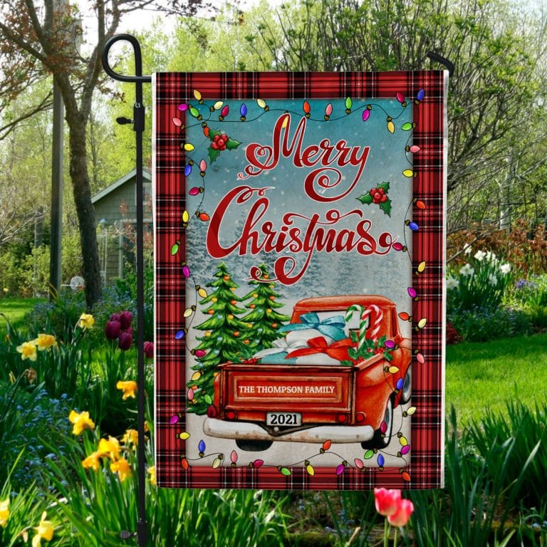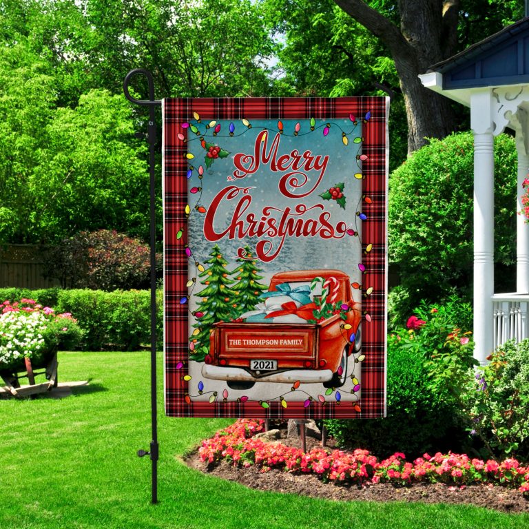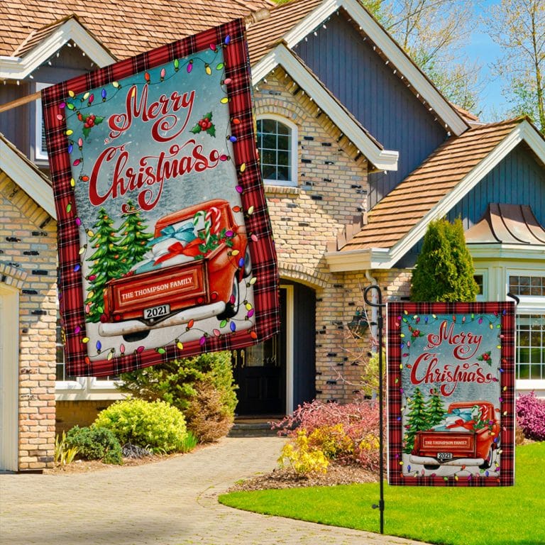 Let’s Shop Personalized Merry Christmas Red Truck Outdoor House Flag – Custom Family Name Christmas Home Garden Flag!