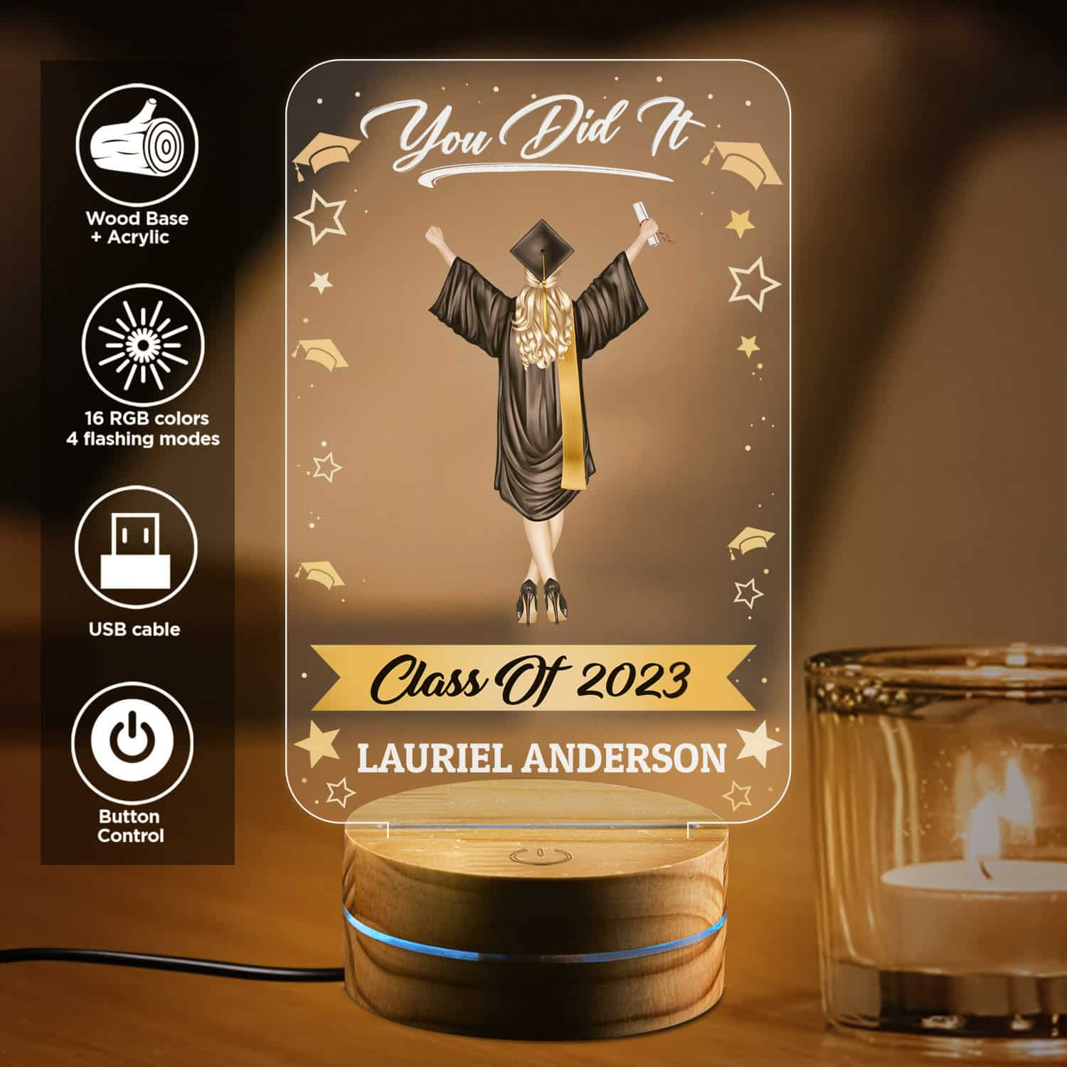 Let’s Shop Personalized Class of 2023 Graduation Gifts – Graduation gifts for Her Him – Senior 2023 Customized Clipart Night Light!