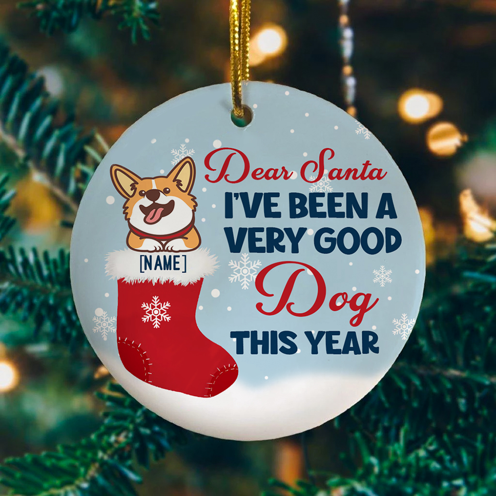 Let’s Shop Personalized Dear Santa I’ve Been A Very Good Dog This Year Circle Ornament – Keepsake Funny Corgi Christmas Ornament!