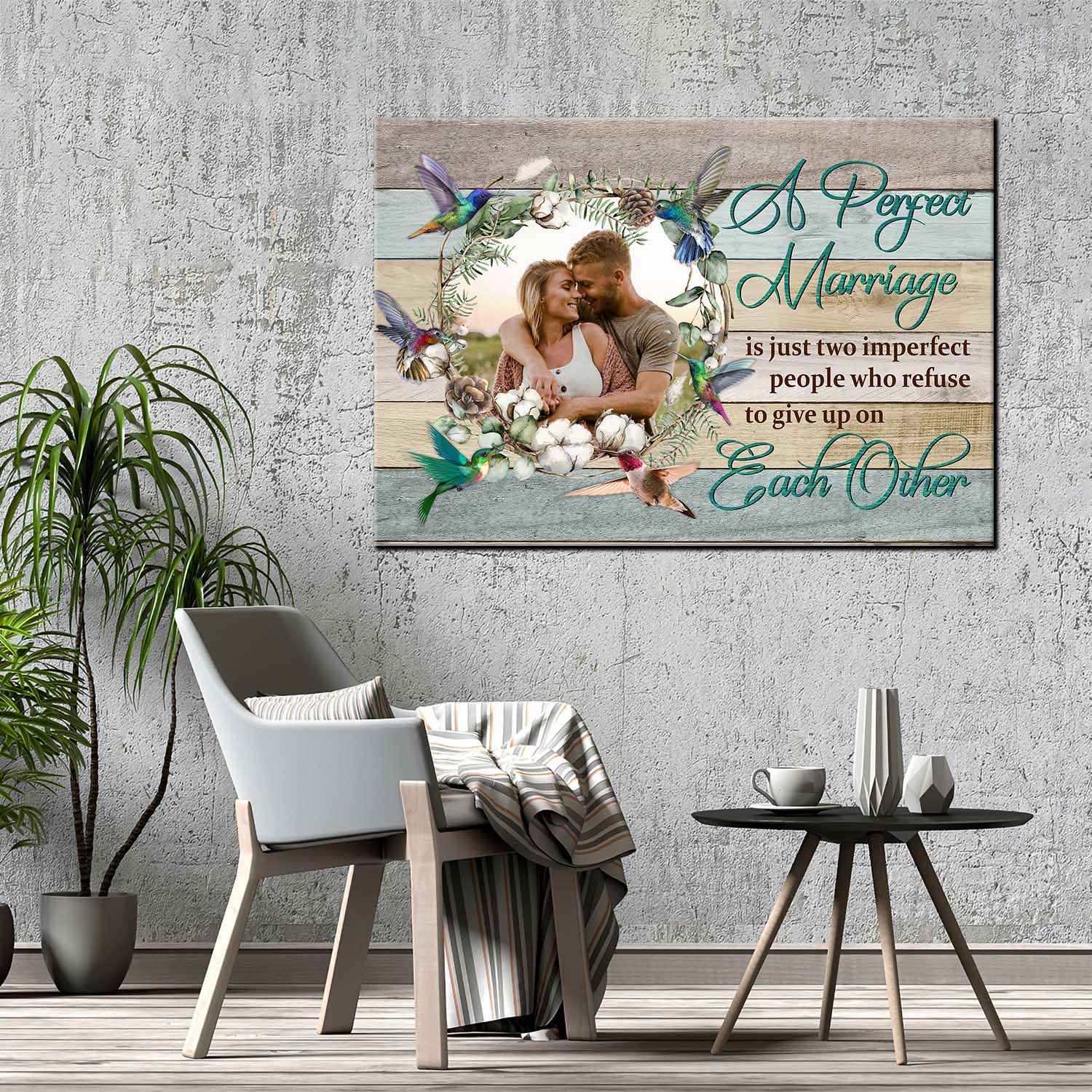 Let’s Shop Personalized Photo A Perfect Marriage Is Just Two Imperfect People Framed Canvas Prints – Unframed Poster!