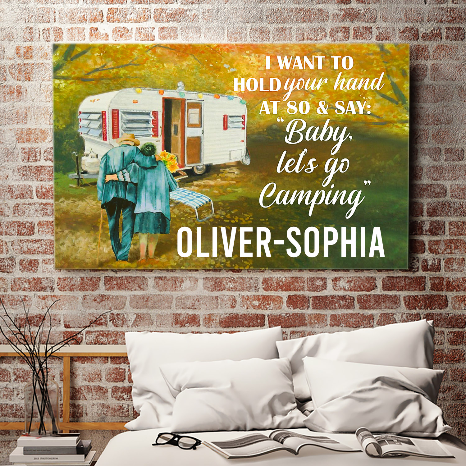 Let’s Shop Personalized I Want to Hold Your Hand at 80 and Say Baby Let’s Go Camping Framed Canvas – Unframed Poster!